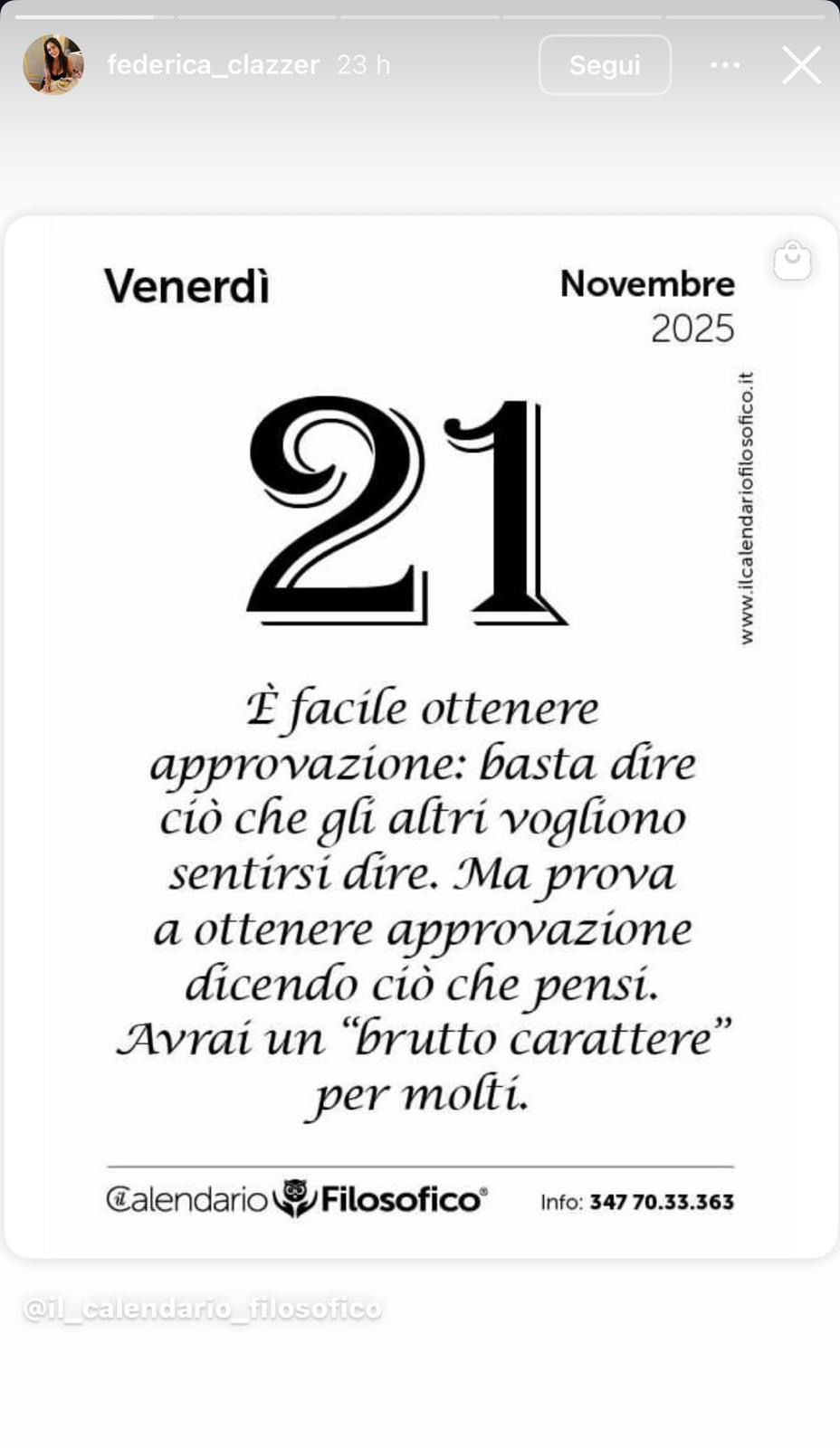 Per prima cosa, infatti, la Clazzer ha postato nelle sue storie Instagram quella che sembra essere una chiara frecciatina a ciò che è andato in onda in questi ultimi giorni, per poi condividere alcuni scatti in compagnia della famiglia e delle figlie di Ricci.