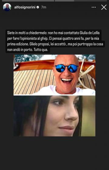 Dichiarazioni a cui ha voluto rispondere lo stesso Signorini attraverso una storia su Instagram: