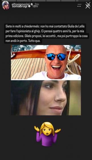 Siete in molti a chiedermelo: non ho mai contattato Giulia De Lellis per fare l’opinionista al Gf Vip. Ci pensai quattro anni fa, per la mia prima edizione. Glielo proposi, lei accettò, ma poi purtroppo la cosa non andò in porto. Tutto qua.