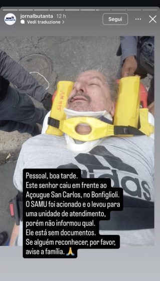 Il signore della foto è mio padre. Un mio cugino ha visto questa notizia ieri sera, ma finora la famiglia non è riuscita a trovarlo. Sappiamo solo che è stato soccorso e portato in un reparto di assistenza, ma non è stato informato in quale ospedale o UPA. Probabilmente era senza documenti. Se qualcuno sa dove si trova o ha qualsiasi informazione mi contatti direttamente via mail: e info@helenaprestes.com Se possibile, lasciate anche un numero di telefono per potervi ricontattare rapidamente.Grazie di cuore a tutti coloro che possono aiutare.