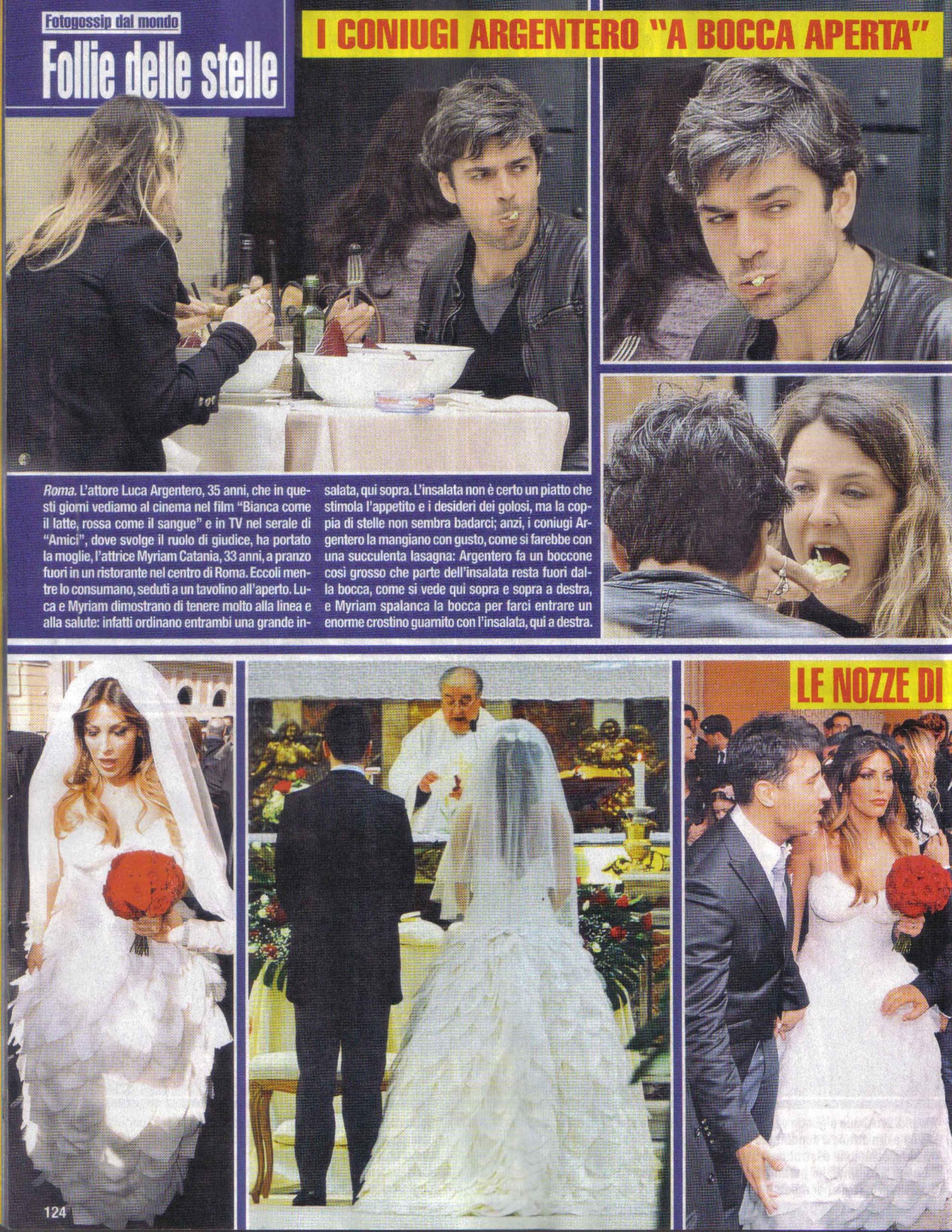 L’ex gieffino e attore Luca Argentero, che in questi giorni è impegnato con le registrazioni di Amici in qualità di giudice, ha portato la moglie Myriam Catania, a pranzo in un ristorante nel centro di Roma. Entrambi ordinano una grande insalata: Luca fa un boccone così grosso che parte dell’insalata gli resta fuori dalla bocca, mentre Myriam spalanca la bocca per farci entrare un enorme crostino guarnito con l’insalata.