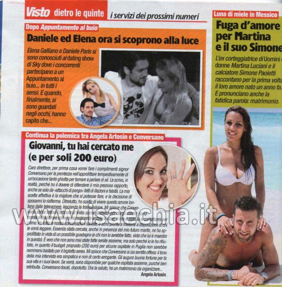 Tira più un’anteprima di Visto che un carro di buoi. Poteva Angela Artosin tacere riguardo le ultime accuse mosse nei suoi confronti da Giovanni Conversano? L’ex tronista di Uomini e Donne ci tiene a fare le dovute precisazioni al vetriolo. Nel frattempo, Martina Luciani si gode le meritate vacanze assieme all’uomo che, da un anno a questa parte, la rende felice.