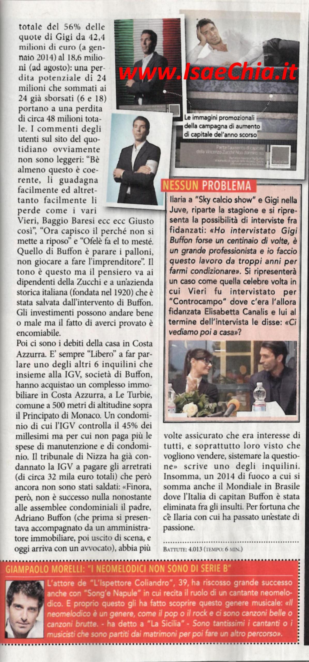 E’ passato quasi un anno da quel 16 ottobre, giorno in cui il portiere della Nazionale Italiana, Gigi Buffon, ha conosciuto la giornalista Ilaria D‘Amico. Da allora è scoccata una scintilla che si è presto trasformata in un amore difficile, perché Gigi era sposato con la modella ceca Alena Seredova. Quest’ultima ha negato a lungo la loro crisi e ha difeso con i denti il loro matrimonio, ma Gigi e Ilaria sono finalmente usciti allo scoperto e la separazione alla Seredova è arrivata subito dopo. Mentre affrontava questa situazione, Buffon ha affrontato anche una grave perita al punto di vista economico: perdeva milioni del suo patrimonio personale. Gigi aveva investito come socio principale nella Zucchi, celebre marchio di abbigliamento, ma la società, secondo Libero, è in perdita da anni e la KPMG, la società che ne tiene i conti, si è rifiutata di mettere la firma, perché ci sono “molteplici e significative incertezze”. La società, infatti, ha prodotto debiti per oltre 15 milioni nel 2013 e oltre quasi 12 nel 2014 e proprio l’anno scorso Buffon ne aveva investiti 18 per ricapitalizzare l’azienda, acquistando il 56% delle quote. La mancata firma della KPMG ha causato un crollo in borsa del 7,7% del valore delle azioni Zucchi, portando il valore potenziale delle quote di Buffon da oltre 42 milioni a 18,6 milioni: una perita potenziale di 24 milioni, che si aggiunge ai milioni già sborsati. Poi ci sono i debiti della casa in Costa Azzurra: Libero ha fatto parlare uno dei sei inquilini che insieme alla società IGV di Buffon hanno acquistato un complesso immobiliare in Costa azzurra. L’IGV controlla il 45% dello stabile, ma non ne paga le spese condominiali. Il tribunale di Nizza ha già condannato l’IGV a pagare i 32.000 euro di debito, ma fino a pochi giorni fa niente. Solo ieri, Le Iene hanno manato in onda un servizio in cui hanno intervistato Buffon e hanno ottenuto conferma che il debito è stato finalmente saldato. Insomma, un disastro. Per fortuna che c’è Ilaria a regalargli un momento di felicità…
