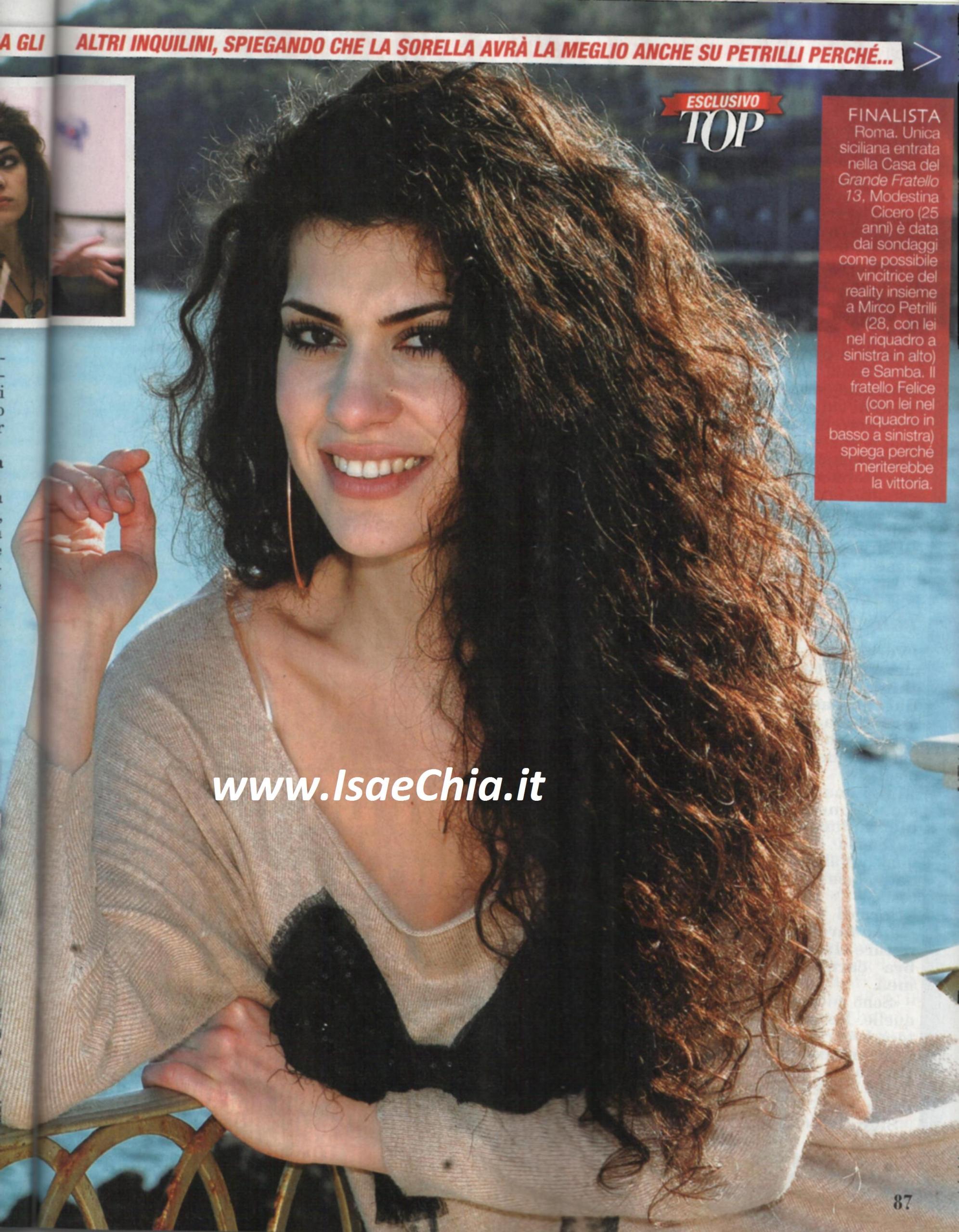 Lunedì è andata in onda l’ultima puntata del Grande fratello, che ha visto Modestina Cicero classificarsi al terzo posto. Poco prima di venire a conoscenza della decisione del pubblico, la madre della ragazza ha dichiarato: “Sono certa che gli altri concorrenti siano meno meglio nella vita, più pacati e voglio sperare che si siano comportati così esasperando se stessi per attirare l’attenzione. Mia figlia, invece, ha deciso di portare i valori, un’umanità che non cerca scandali a tutti i costi”. Più agguerrito è invece il fratello Felice: “La mia piccolina è stata forse l’unica a non ricevere l’aereo con lo striscione, nonostante i suoi fan si fossero impegnati a raccogliere i soldi: hanno raggiunto 700 euro, ma ce ne volevano 1200. E pensare che è stato detto che per farle scampare l’eliminazione, avessimo comprato i voti dal call center! Noi siamo umili lavoratori e giochiamo correttamente! Io ho creduto da subito che sarebbe arrivata in finale: dopo 13 edizioni, il pubblico è stanco di sostenere gente che per farsi notare ha bisogno di fare casino e flirtare con gente sconosciuta. I valori di Modì, il rispetto, l’onore, la famiglia e l’amicizia, messi a confronto con falsità, strategie e pugnalate alle spalle, non sono poco. A fare il GF ci vuole coraggio: delle proprie parole, di parlare le persone dritto nell’occhio. L’hanno chiamata “2 novembre”: certi concorrenti non hanno nemmeno rispetto per le ricorrenze! Lei meritava la vittoria, dopo una serie di porte chiuse in faccia: è il momento di dare valore a una ragazza dai sani principi, che possa fare da esempio agli altri e cambiare l’etichetta del Grande fratello non vista così bene”.
