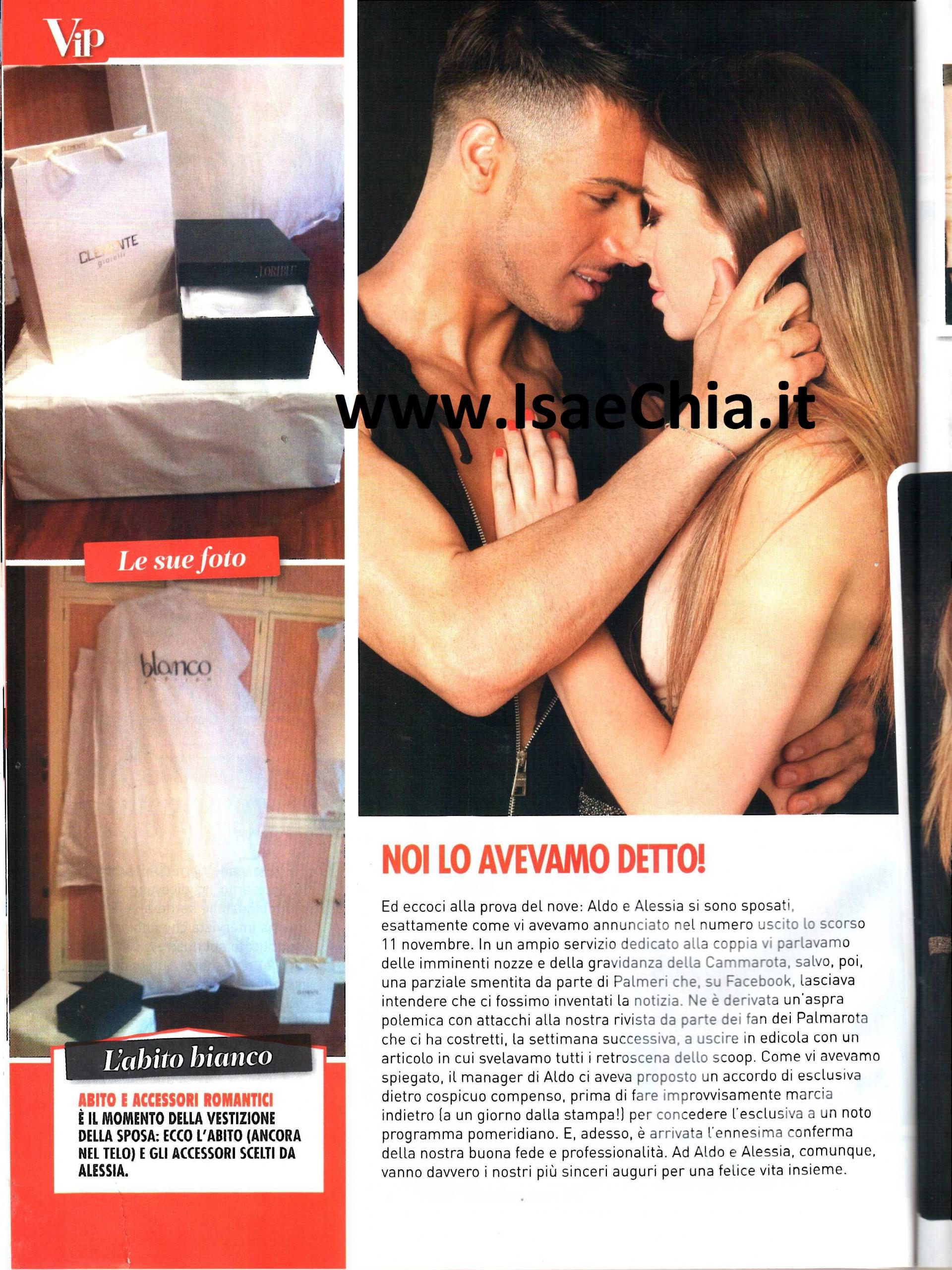 A meno di un anno da quando sono usciti insieme dallo studio di Uomini e Donne, Aldo Palmeri ed Alessia Cammarota hanno celebrato le loro nozze, di cui noi di Isa e Chia vi abbiamo mostrato le immagini esclusive in QUESTO post. I due, infatti, erano andati a convivere fin da subito e lo scorso 19 dicembre, il giorno del compleanno di Aldo, si sono detti di sì. Dietro le nozze, per alcuni giudicate un po’ affrettate, ci sarebbe la gravidanza di lei, non ancora confermata dalla coppia, ma annunciata da più settimanali e vari blog. Adesso, il settimanale Vip rivela tutti i dettagli del matrimonio a sorpresa dell’anno. Il sì è stato pronunciato prima con rito civile a Vizzini, a 50 km da Catania, dove vivono da qualche tempo. E’ seguito poi un ricevimento da sogno, a cui hanno preso parte solo amici e parenti stretti. Gli sposini hanno regalato agli ospiti una coppia di cristallo come bomboniera e non si sono risparmiati uno dei loro siparietti comici anche il giorno delle nozze: i due avevano fatto una scommessa sulla torta nuziale e quando è arrivato il momento di tagliarla, entrambi pretendevano di aver vinto. Ne è solito il solito battibecco, che è terminato, letteralmente, a torte in faccia, tra le risate dei presenti. Impegnatissimi con le serate, Aldo e Alessia per il momento hanno dovuto rimandare il viaggio di nozze. O meglio, anticiparlo! I due protagonisti di Uomini e Donne, infatti, si erano regalati prima delle nozze un romanticissimo viaggio a Parigi. Tra gli auguri giunti alla coppia, non potevano mancare quelli di Eugenio Colombo e Francesca Del Taglia, anche loro conosciutisi a Uomini e Donne, già genitori del piccolo Brando e prossimi alle nozze, che hanno scritto “Che questo giorno possa essere l’inizio di un percorso insieme come famiglia“. Silenzio, almeno pubblico, da Cristian Gallella e Tara Gabrieletto, anche loro sposi a settembre.