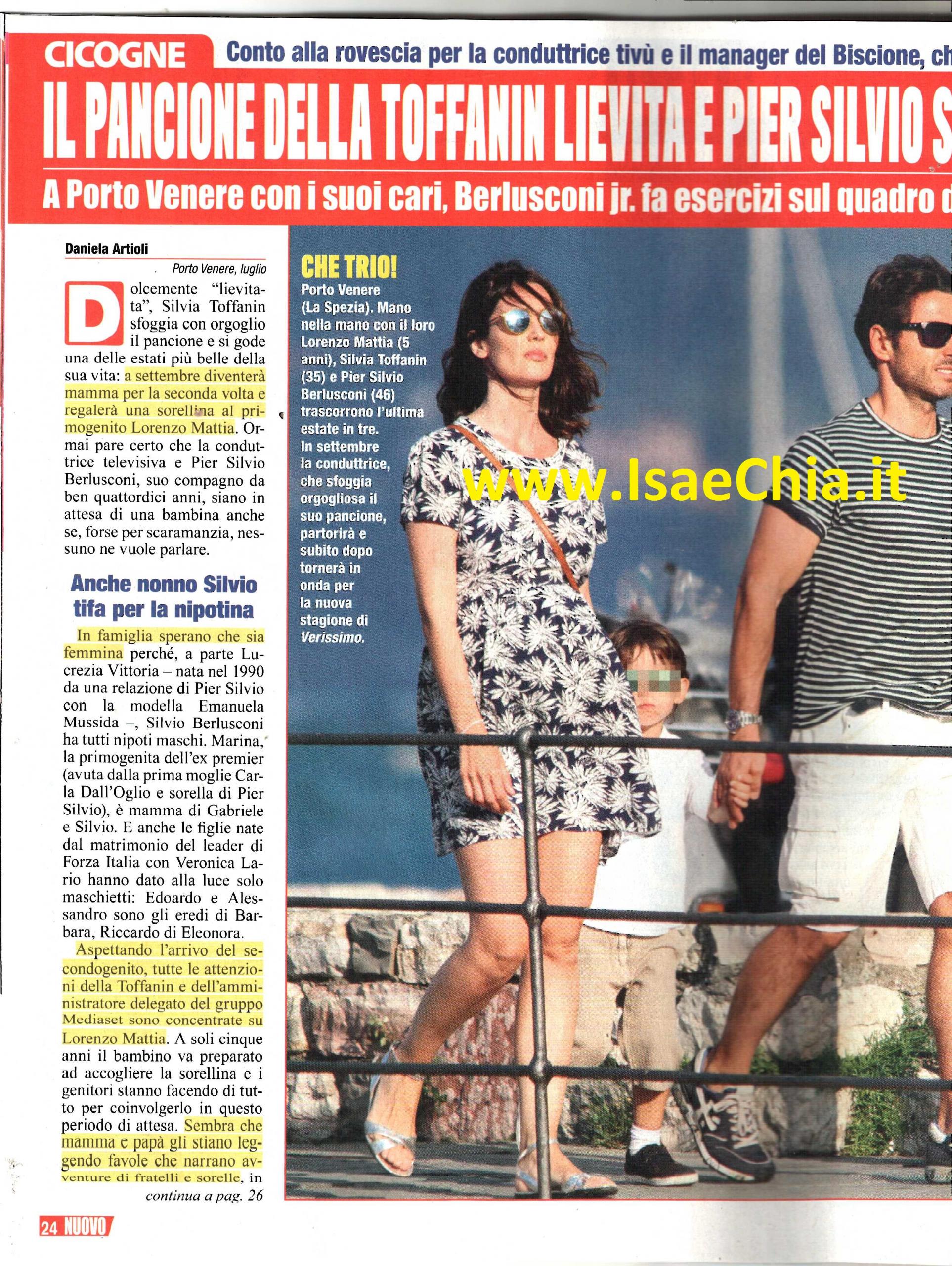 Sono passati già alcuni mesi da quando Silvia Toffanin ha annunciato la sua seconda gravidanza:il secondogenito della conduttrice e di Pier Silvio Berlusconi arriverà a settembre. E ufficialmente, non si sa ancora il sesso. In famiglia sperano si tratti di una femminuccia, perché, a parte Lucrezia Vittoria, nata nel 1990 dalla relazione di Pier Silvio con la la modella Emanuela Mussida, l’ex Premier Silvio Berlusconi ha tutti nipoti maschi. Il piccolo Lorenzo Mattia ha cinque anni e va preparato ad accogliere il nuovo arrivo in casa. Molti bambini, si sa, reagiscono con gelosia all’arrivo di un nuovo bimbo in casa. Ecco perché Silvia e Pier Silvio non perdono mai occasione di dedicarsi completamente anche al loro principino. Eccoli, infatti, tutti insieme a Porto Venere (La Spezia), dove trascorrono l’ultima estate in tre! La conduttrice di Verissimo ha proprio un bel pancino, che si fa notare sempre più e che accarezza teneramente. Così come guarda il piccolo Lorenzo mentre si arrampica sulle corde e si allena proprio come fa il suo papà. “Silvia capisce perfettamente che Lorenzo va aiutato ad accettare il nuovo ruolo di fratello maggiore. Lo ha coinvolto nella scelta della cameretta e nell’acquisto di tute e bavaglini per la piccola. E non è caduta nella trappola dei regali: molte coppie riempiono i primogeniti di regali per farli sentire amati, mentre lei crede che le tenerezze e la premure siano il modo migliore per non far temere al bambino l’arrivo di un fratello o di una sorella” ha dichiarato un collaboratore di Verissimo. Il parto è previsto tra un paio di mesi e, se tutto andrà bene, ad ottobre la Toffanin sarà pronta a ripartire con la sua trasmissione. E il matrimonio? Per ora ancora niente. A chi parlava di una crisi di coppia, Berlusconi Junior, di solito riservatissimo, ha risposto: “Io adoro Silvia. I fatti lo dimostrano e lo dimostreranno“.