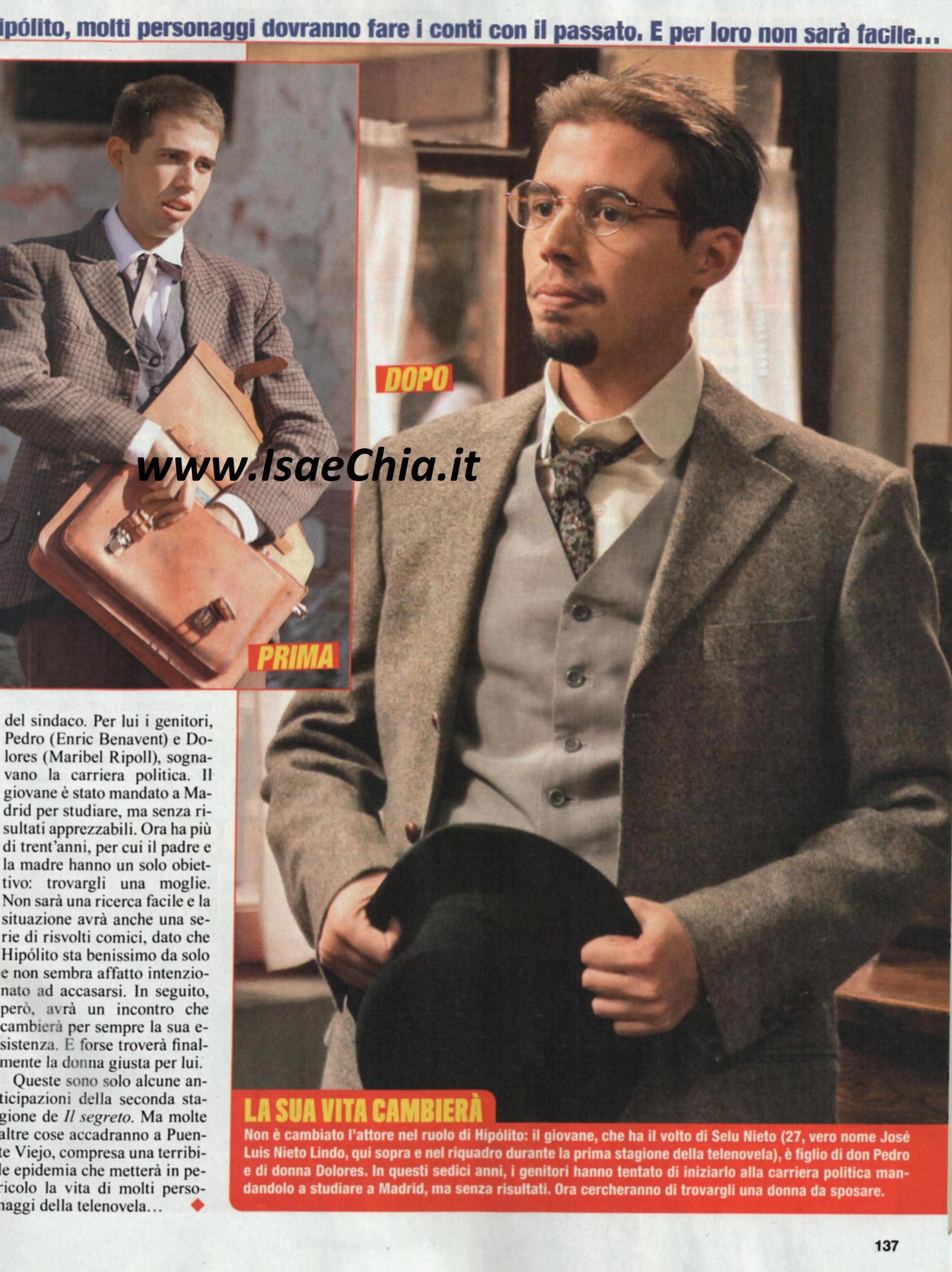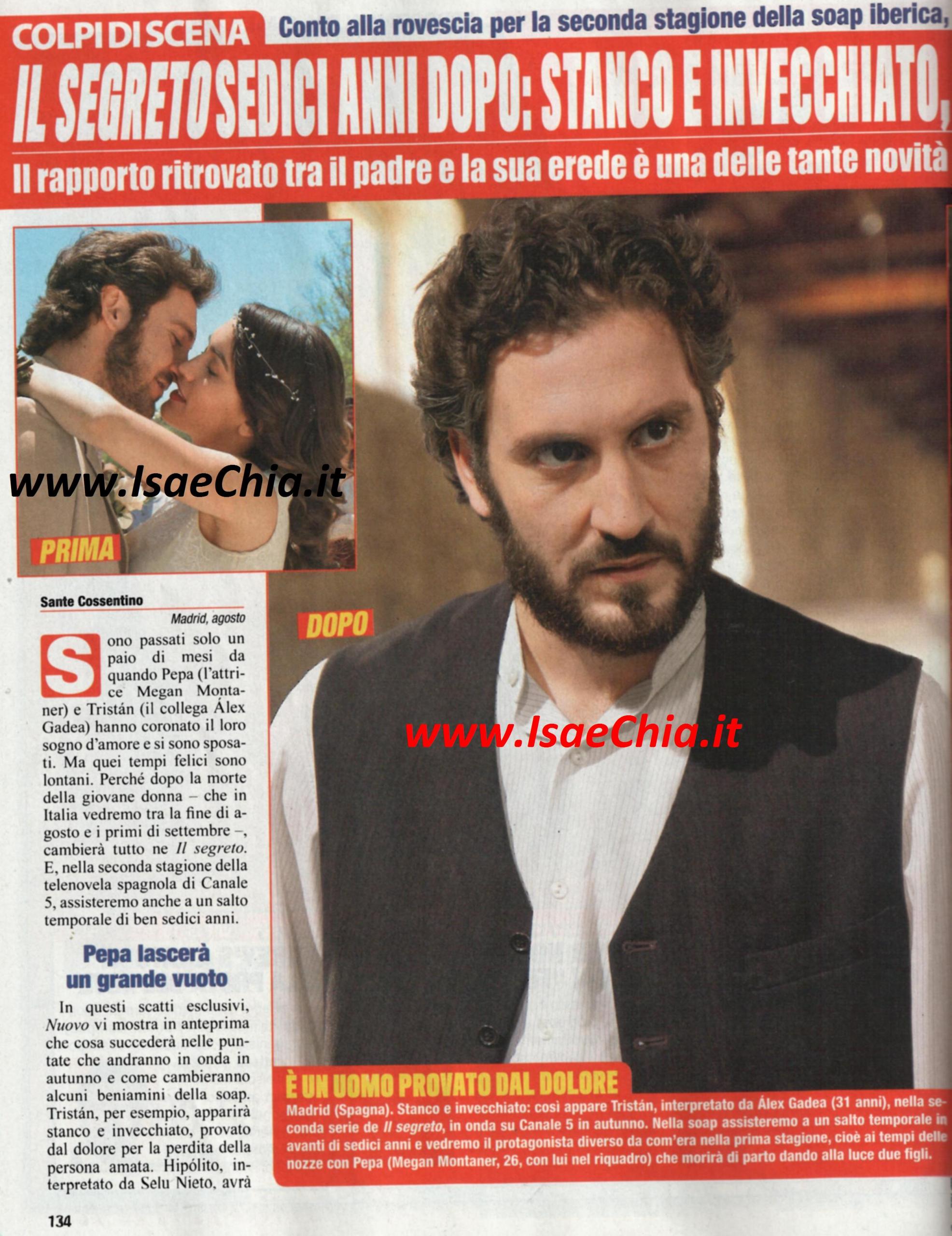 Nelle puntate ora in onda di Il segreto, i protagonisti Tristàn (Alex Gadea) e Pepa (Megan Montaner) si sono sposati da poco. Ma nelle puntate che andranno in onda tra agosto e settembre, Pepa abbandonerà la serie e la fiction verrà stravolta in seguito alla sua morte. Nella seconda stagione, infatti, ci sarà un salto in avanti di ben 16 anni e Nuovo ha alcuni scatti esclusivi delle immagini. Tristàn apparirà molto invecchiato, provato dalla perdita del suo amore. Hipolito (interpretato da Selu Nieto) avrà un aspetto più adulto, ma rimarrà buffo, mentre il piccolo Martin tornerà nel paesino di Puente Viejo in abiti sacerdotali. Pepa morirà di parto, dopo aver dato alla luce la figlia Aurora (Ariadna Gaya) e Tristàn non troverà pace e farà crescere la figlia in collegio. Ad un certo punto avverrà l’atteso incontro tra padre e figlia, ma sarà un percorso a ostacoli. Prima che Aurora arrivi al paese, infatti, ci sarà un’altra donna che la gente scambierà per lei. In realtà si tratta di Giacinta, una compagna di stanza di Aurora, che le ruba l’identità e fa di tutto per tenerla lontana dal padre. Ma per Tristàn le sorprese non finiscono qui: al paese torna anche il figlio adottivo Martin, nato da Pepa e dalla sua precedente relazione con Carlos Castro, che tutti credevano morto. Tristàn lo troverà a pregare sulla tomba di Pepa senza riconoscerlo: lui è diventato un sacerdote, si fa chiamare Gonzalo, vuole scoprire tutto sulla vita della madre e per farlo farà da aiutante al parroco don Anselmo. Martin conoscerà Maria, la figlia della defunta Emilia, s’innamorerà di lei e dovrà scegliere se continuare a fare il prete. Hipolito, invece, è stato mandato dai genitori (il sindaco Pedro e sua moglie Dolores) a studiare fuori per intraprendere la carriera politica, ma senza risultati. Ora ha oltre 30 anni e i genitori gli cercano moglie. Peccato che lui non abbia intenzione di accasarsi e il tutto avrà dei risvolti comici, finché non farà un incontro che potrebbe fargli trovare la donna giusta. Infine, una terribile epidemia metterà in pericolo la vita di molti personaggi…