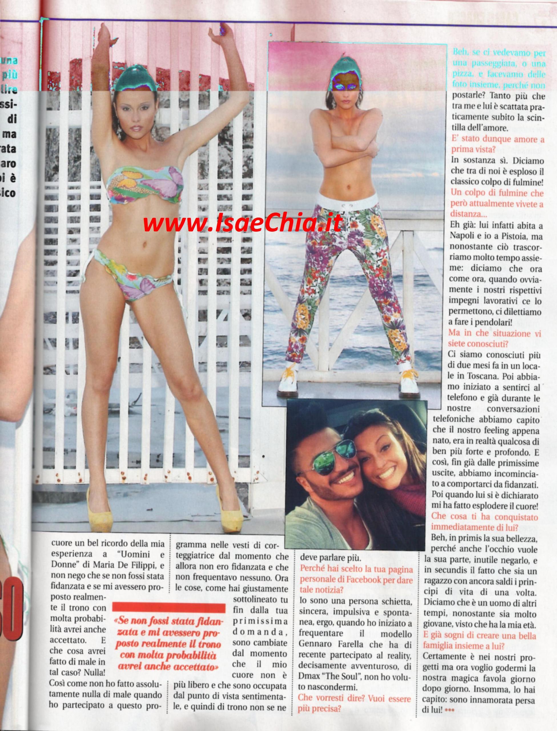 Dopo esser stata contesa dai due tronisti Aldo Palmeri e Tommaso Scala, la corteggiatrice Irene Casartelli sembrava una delle papabili troniste per la nuova stagione di Uomini e donne. Ma la modella toscana smentisce sin da ora: “Mi sono fidanzata con un ragazzo napoletano. Non ho mai pensato di tenere nascosta la notizia solo per poter salire sul trono. Molte persone, che mi hanno criticato in maniera molto dura durante il mio percorso in tv in tv, si sono fatte un’idea sbagliata di me. Io non sono affatto un’arrivista pronta a tutto per la fama e il successo! Ok, mi piace il mondo dello spettacolo e porto nel cuore l’esperienza nel programma di Maria De Filippi e non nego che se non fossi stata fidanzata, con molta probabilità avrei accettato il trono. Cosa avrei fatto di male in tal caso? Nulla! Così come non ho fatto nulla di male quando ho partecipato nelle vesti di corteggiatrice, dal momento che non ero fidanzata con nessuno. Ora le cose sono cambiate, il mio cuore è occupato e del trono non si deve parlare più”. Irene aggiunge: “Ho scelto di comunicare questo cambiamento nella mia vita su Facebook perché sono una persona schietta, impulsiva e spontanea, quindi quando ho cominciato a frequentare il modello Gennaro Farella (che ha recentemente partecipato all’avventuroso reality di DMax ‘The Soul’) non ho voluto nascondermi. Tra di noi è stato il classico colpo di fulmine, e nonostante lui abiti a Napoli e io a Pistoia, trascorriamo tanto tempo insieme: quando i nostri impegni lavorativi ce lo permettono, ci dilettiamo a fare i pendolari! Ci siamo conosciuti in Toscana, poi abbiamo iniziato a sentirci per telefono e ci siamo accorti che il nostro feeling era qualcosa di più profondo. Fin dalle prime uscite abbiamo cominciato a comportarci da fidanzati. Mi ha conquistato in primis la sua bellezza, ma poi anche il fatto che sia un ragazzo con ancora saldi i principi di una volta. Di sicuro anche la famiglia è nei nostri progetti, ma per ora voglio godermi la nostra favola giorno dopo giorno”.