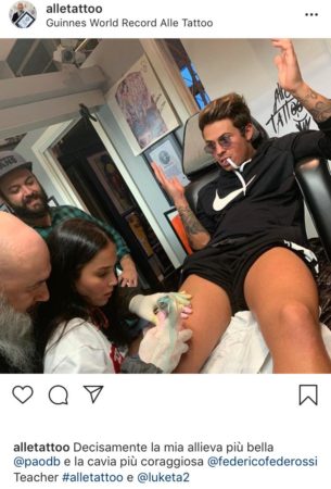 Anche il cantante però non è stato da meno, e ha scelto di rispondere al colpo di testa della fidanzata facendosi tatuare direttamente da lei una coscia, sulla quale ancora non sappiamo di preciso che cosa abbia deciso di incidere. Avrà scritto anche lui il nome della sua dolce metà?
