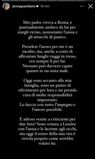 La fine della relazione arriva in un periodo particolarmente doloroso per Jenny, che recemente ha perso il suo amatissimo padre, Angelo, dopo una lunga lotta contro il cancro. Il 12 dicembre, l’influencer aveva condiviso un messaggio toccante sui social:
