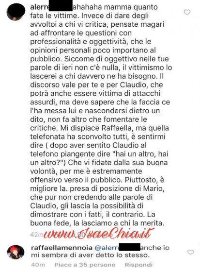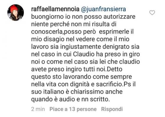 Alle parole di Juan, a sua volta ha voluto replicare Raffaella:
