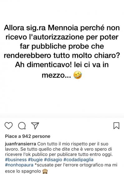 Juan Fran Sierra contro Raffaella Mennoia: ecco le sue parole!