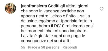 Proprio nelle scorse ore, però, Claudio si è goduto un raduno a Verona con le numerosissime fan che continuano a sostenerlo nonostante tutto e questa cosa ha particolarmente infastidito Juan che non riesce a comprendere dome una persona come il suo ormai ex possa, così, prendersi gioco degli altri senza batter ciglio. Sotto una nuova foto condivisa dall’ex del Serpa, quindi, è ritornato all’attacco, promettendo nuovi colpi di scena: