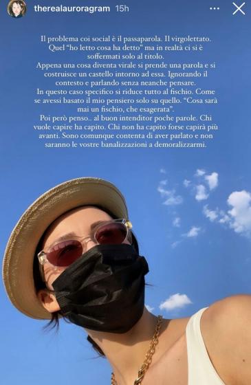 Anche Aurora è tornata sull’argomento tramite una Instagram Stories in cui ha spiegato che il suo discorso era molto più ampio e non si riduceva solo al ‘fischio’, e ha puntualizzato inoltre che chi ha voluto capire il suo sfogo ha capito: