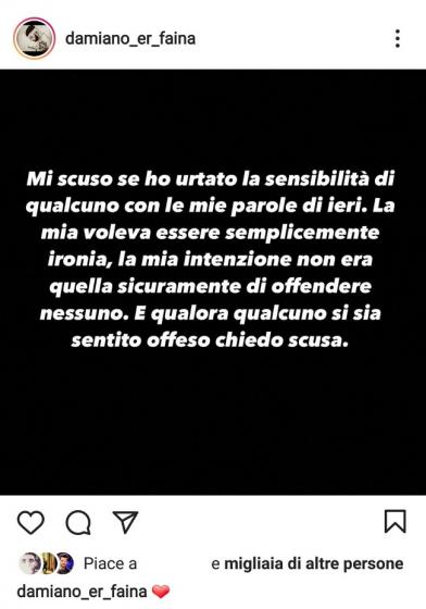 Dopo le sue parole, Er Faina è stato sommerso di critiche e dopo pochissime ore si è reso conto del polverone che ha innalzato e ha fatto marcia indietro chiedendo scusa: