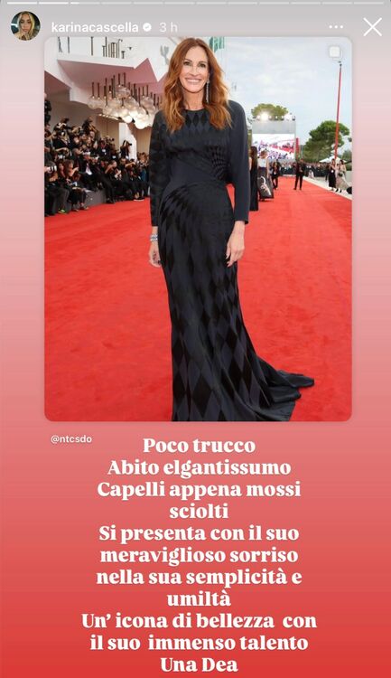 Karina ha postato delle storie che ritraevano la meravigliosa Julia Roberts scrivendo: