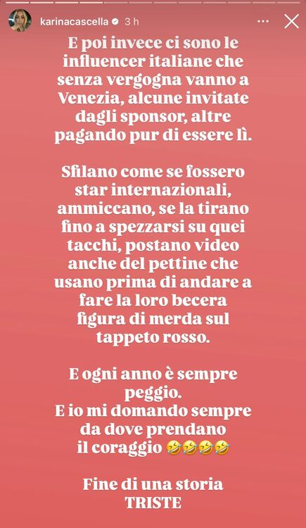 E poi invece ci sono le influencer italiane che senza vergogna vanno a Venezia, alcune invitate dagli sponsor, altre pagando pur di essere lì.