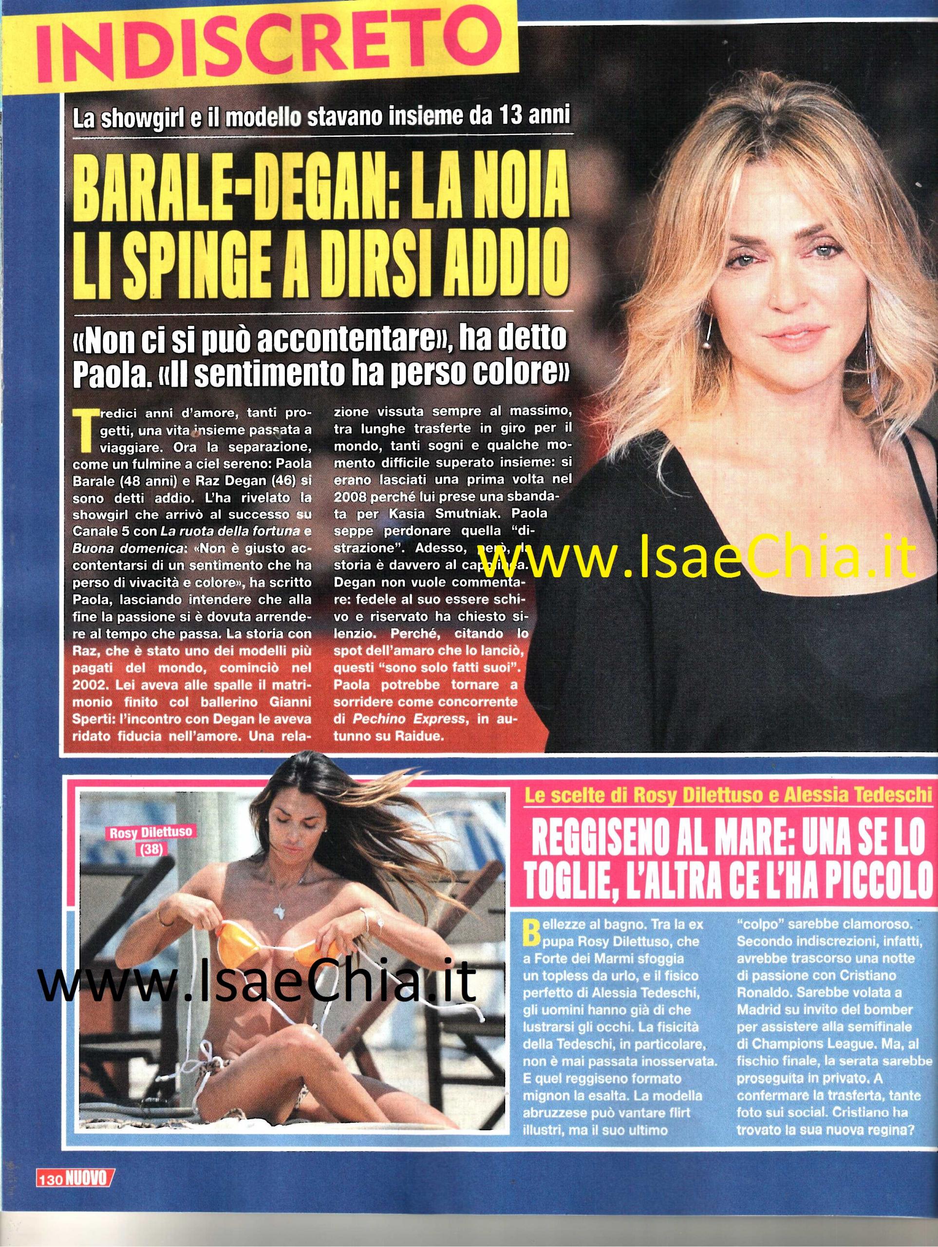 Coppie che vanno, coppie che vengono, coppie che si riformano. Il gossip è composto soprattutto da questo! Dopo tredici anni d’amore, danno notizia della fine della loro storia Paola Barale e Raz Degan. La conduttrice di La pupa e il secchione, lanciata negli anni ’90 da La ruota della fortuna, ha dichiarato: “Non è giusto accontentarsi di un sentimento che ha perso di vivacità e colore“. La storia col modello era nata dopo il fallimento del matrimonio con il ballerino e opinionista di Uomini e Donne Gianni Sperti e i due avevano vissuto questo loro amore sempre al massimo, spesso in viaggio in giro per il mondo. Nel 2008 si erano lasciati quando lui aveva preso una sbandata per l’attrice Kasia Smutniak, ma Paola perdonò quella distrazione e il loro sentimento aveva vinto, almeno fino ad ora. Adesso Paola potrebbe voltare pagina con una nuova avventura: pare, infatti, che sarà tra i concorrenti di Pechino Express.