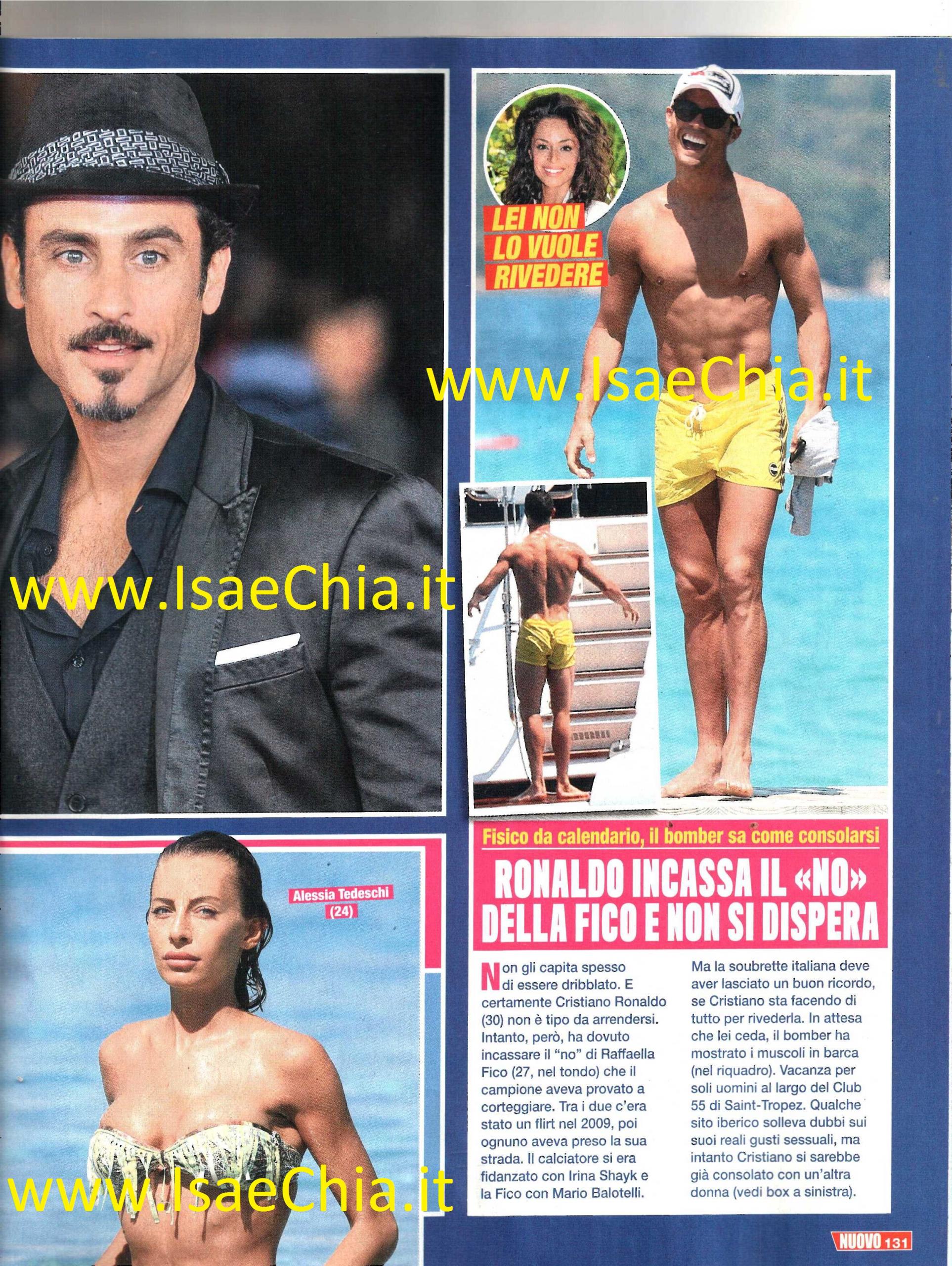 Alcune storie, invece, rimangono un grande mistero: nel 2009, poco dopo la partecipazione al Grande fratello, Raffaella Fico aveva dichiarato di aver vissuto un flirt con il calciatore Cristiano Ronaldo, mai confermato da lui. Il bel portoghese, poi, si è fidanzato con la modella Irina Shayk e la Fico con il calciatore Mario Balotelli, da cui ha avuto poi la piccola Pia. Adesso che entrambi sono single, però, pare che Ronaldo sia tornato all’attacco: eccolo, infatti, in costume al largo di Montecarlo sulla sua barca, dove pare abbia invitato la Fico. Lei, però, avrebbe dribblato l’invito. Il playboy, però, ha già pronta un’altra italiana dietro l’angolo: pare, infatti, che abbia trascorso una notte di passione con la modella abruzzese Alessia Tedeschi.