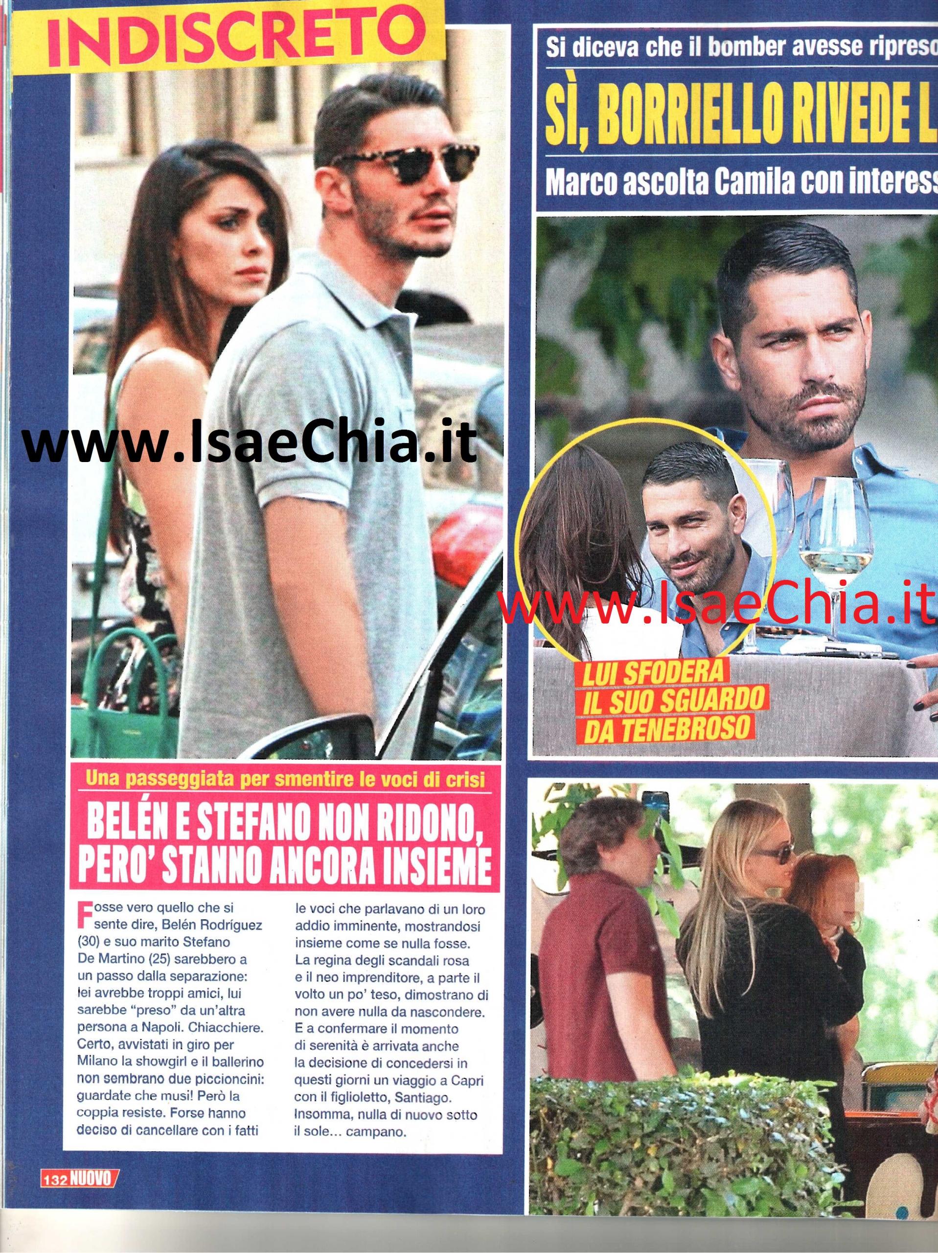 Infine, la coppia più chiacchierata del momento: Belén Rodriguez e Stefano De Martino. I due hanno recentemente avuto un litigio, che aveva portato il ballerino a lasciare il tetto coniugale. I due sono però stati visti di nuovo insieme, anche se i musi sui loro visi non sembrano promettere bene… Si diceva già che Belén avesse ripreso i contatti con il suo ex, Marco Borriello. Poche settimane fa, infatti, la bella argentina aveva invitato il fratello di Marco, Fabio, a casa sua per una festa. Cosa che aveva indispettito molto Emma Marrone, attuale fidanzata di Fabio e ex di Stefano! La verità è un’altra: il bel calciatore ha sì rivisto una sua ex, ma non si tratta di Belén. In queste foto, infatti, è di nuovo con la modella brasiliana Camila Morais, con la quale pare viva una relazione a fasi alterne. I due sono davanti ad un bicchiere di vino seduti ad un bar di corso Sempione a Milano e lui, dopo aver sfoderato uno dei suoi sguardi da tenebroso, sfoggia anche un romantico sorriso!