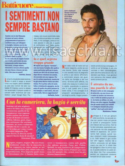Lo abbiamo visto ammiccante, ripreso sullo sfondo, nel parterre di Miss Italia assieme alla sua fidanzata: Giovanni Conversano però, nonostante i mille impegni, non perde di vista la sua rubrica su Top, nella quale concede ai suoi lettori grandissime verita: “I sentimenti non sempre bastano“, per dirne una.