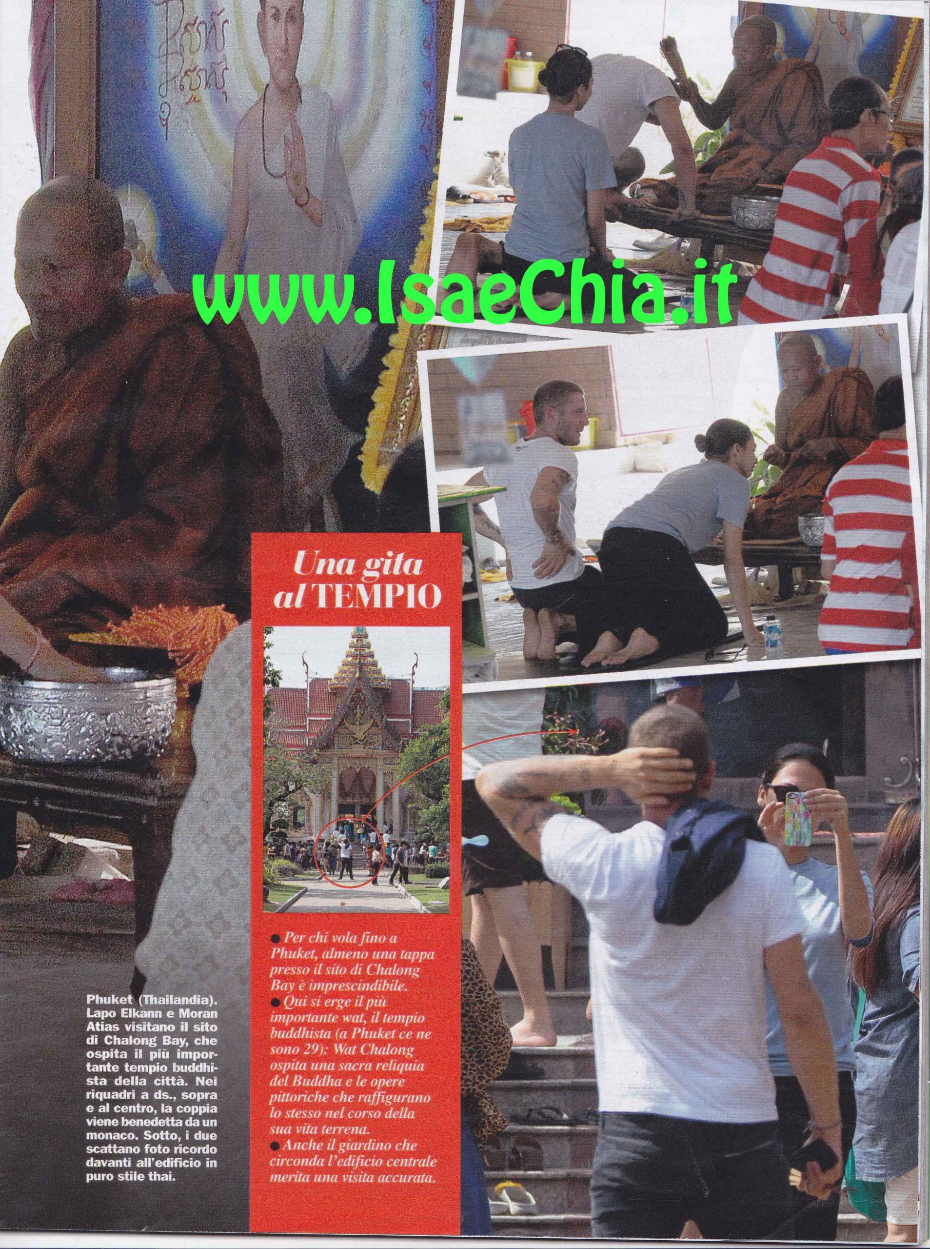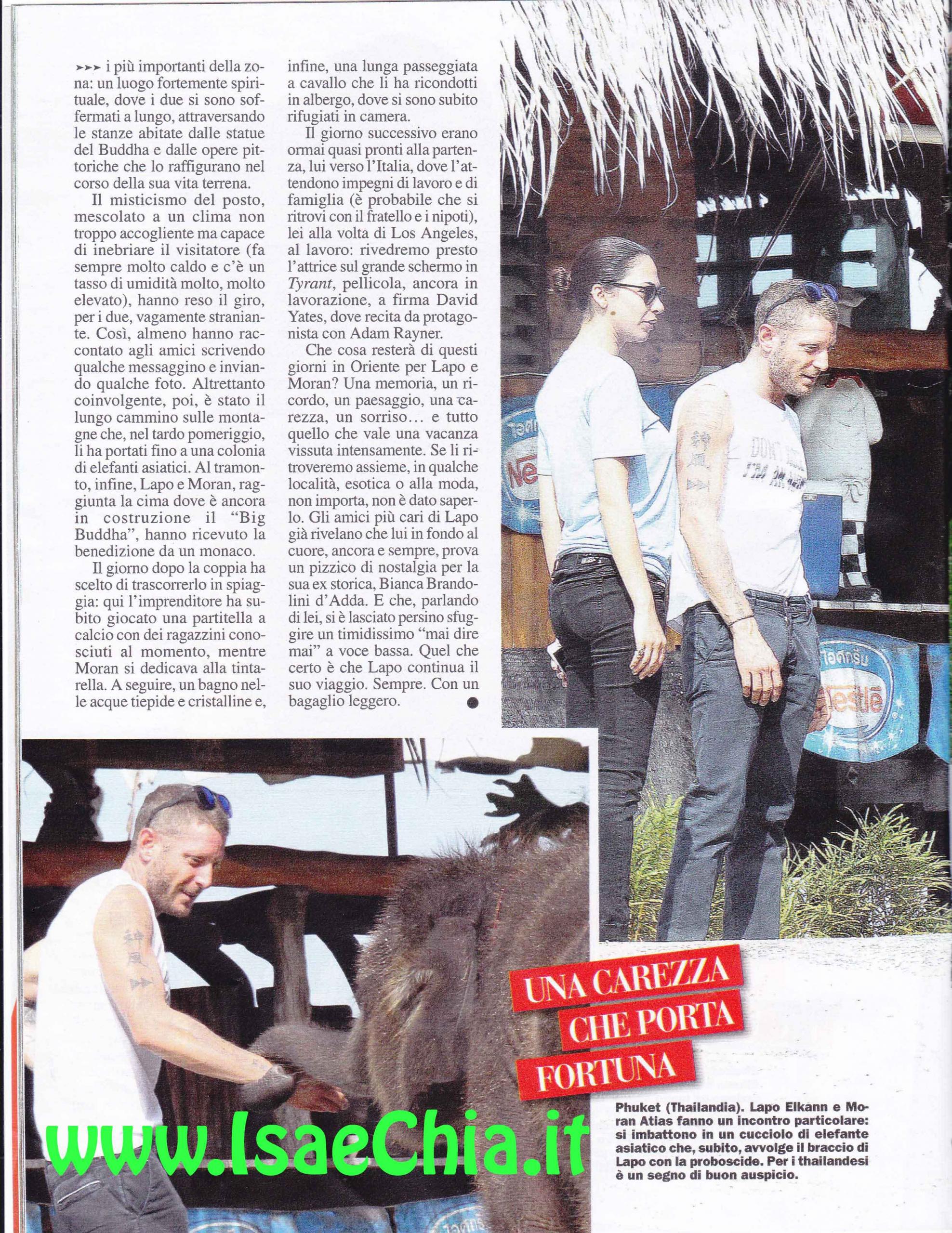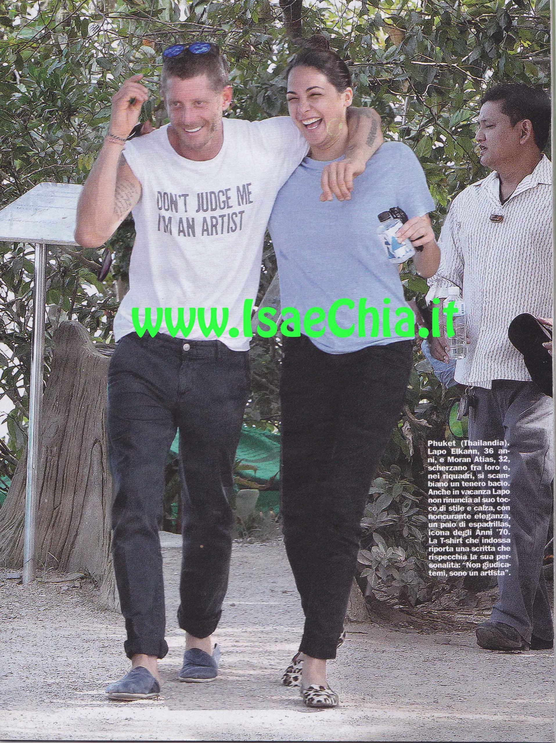 L’imprenditore Lapo Elkann è volato a Phuket, in Thailandia, in compagnia della sua nuova fidanzata, la bella Moran Atias. Anche in vacanza, lui non ha rinunciato allo stile: eccolo infatti in giro con espadrillas e t-shirt con su scritto, in inglese: “Non giudicatemi, sono un artista”. La neo-coppia ha soggiornato al resort più esclusivo della città, lo Sri Panwa, dove negli stessi giorni soggiornava anche una principessa thailandese. Dopo una romantica cena conclusasi con champagne e bacio, una pigra mattinata tra piscina e spa, Lapo ha condotto Moran al tempio Wat Chalong. Raggiunta la montagna di Pukhet, i due si sono inginocchiati nel tempio buddhista e ricevuto la benedizione di un monaco. Durante il pomeriggio, il cammino li ha portati ad una colonia di elefanti asiatici. Il giorno dopo i due sono stati in spiaggia, dove si sono fatti un lungo bagno e lui ha persino improvvisato una partitella a calcio con dei ragazzini appena conosciuti. Poi, il ritorno: lei è volata alla volta di Los Angeles, per lavorare alla pellicola Tyrant, nella quale la vedremo presto. E non ci resta che attendere dov’è che la coppia si farà beccare di nuovo insieme…