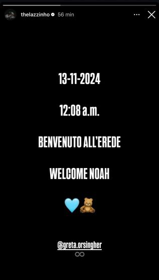 13 – 11 -2024, 12:08. Benvenuto all’erede. Benvenuto Noah.