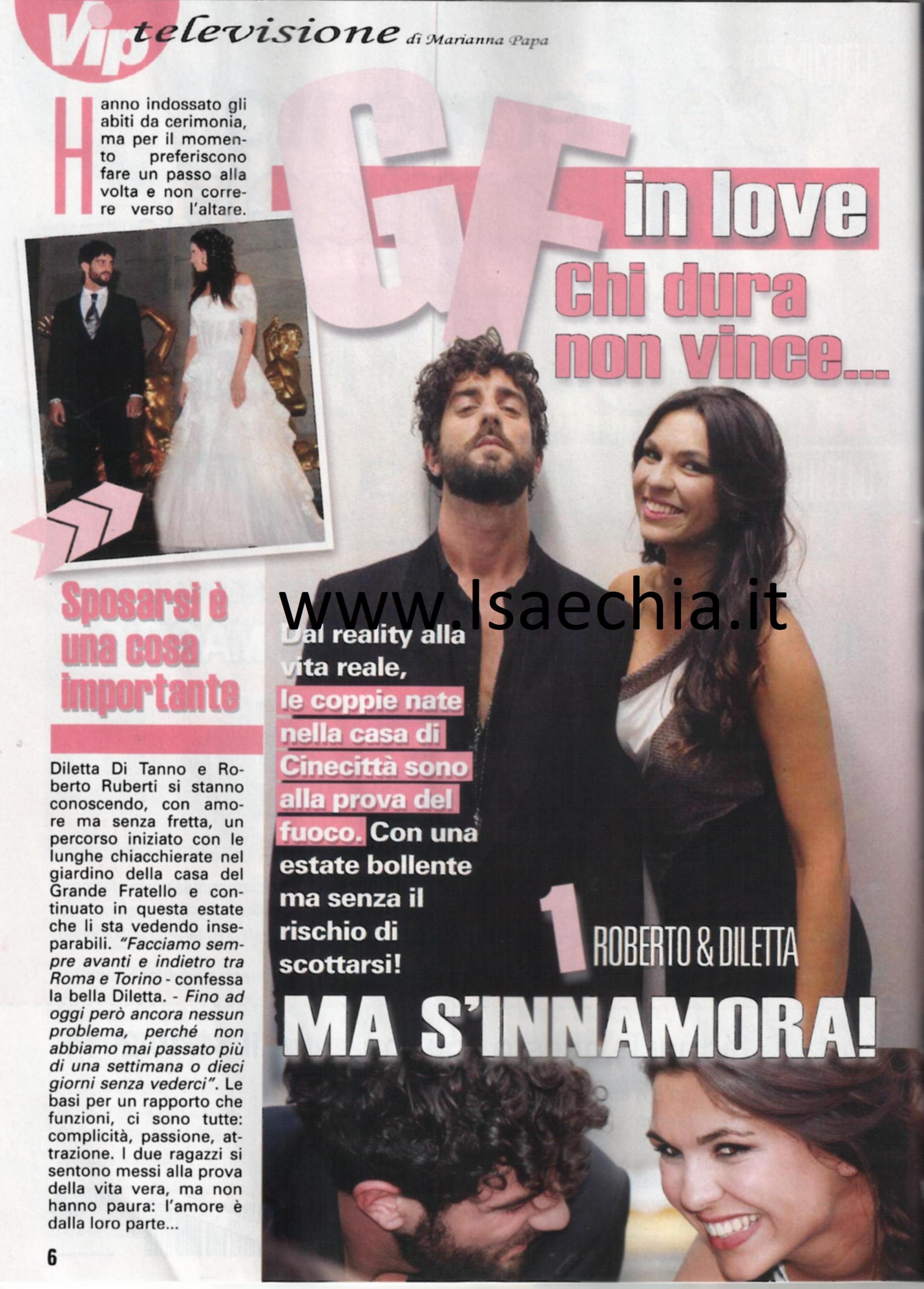 A qualche mese dalla fine del Grande fratello 13, le coppie che si sono formate nella Casa si raccontano. Diletta Di Tanno e Roberto Ruberti hanno vestito gli abiti da sposi per lavoro, ma si stanno conoscendo senza fretta: “Facciamo sempre avanti e indietro tra Roma e Torino” spiega la torinese. “Fino ad oggi nessun problema, perché non abbiamo mai passato più di dieci giorni senza vederci” ha aggiunto. E per quanto riguarda Angela Viviani e Fabio Pellegrini? Tra loro la passione era scoccata verso la fine e i due non hanno mai definito il loro rapporto: “Io e Angela non amiamo etichettarci come coppia. Quello che è accaduto nella Casa ci ha fatto incontrare e ora sta a noi conoscerci meglio. La distanza tra Roma e Milano non c’entra nulla e visto che siamo due persone riservate, vogliamo vivere in tranquillità il nostro rapporto”. In realtà, però, lei confessa: “Se me lo chiedesse, sarei pronta ad andare a vivere da lui anche domani!”…Infine, Francesca Cioffi, che il suo amore ce l’aveva già fuori dalla Casa e la aspettava per convolare a nozze. Il matrimonio si è tenuto lo scorso 30 giugno e non era presente nessuno degli ex coinquilini, eccetto la damigella d’onore Mia Cellini. Francesca e suo marito Enzo sono volati ai Caraibi e secondo alcuni sarebbero tornati in tre…