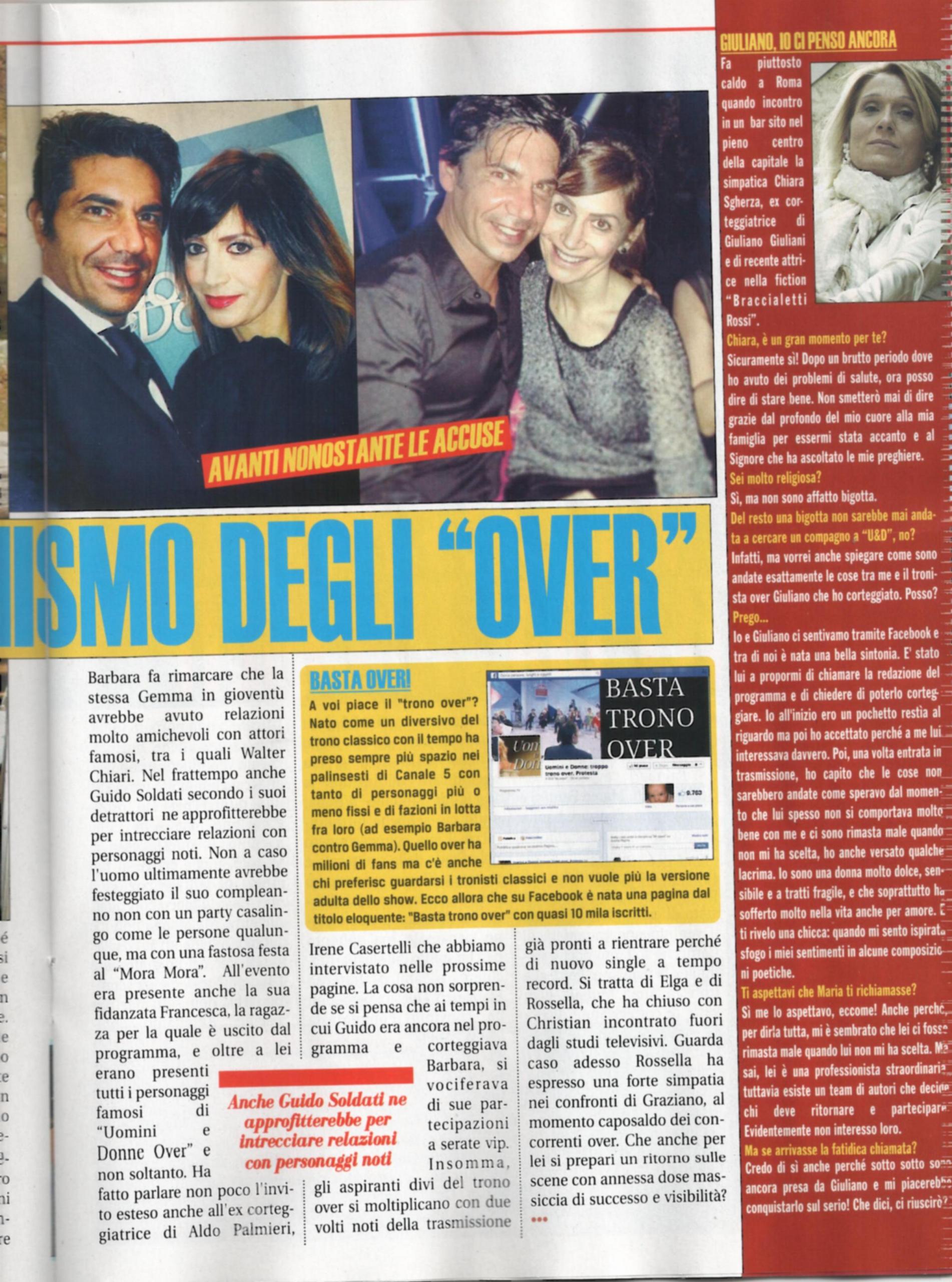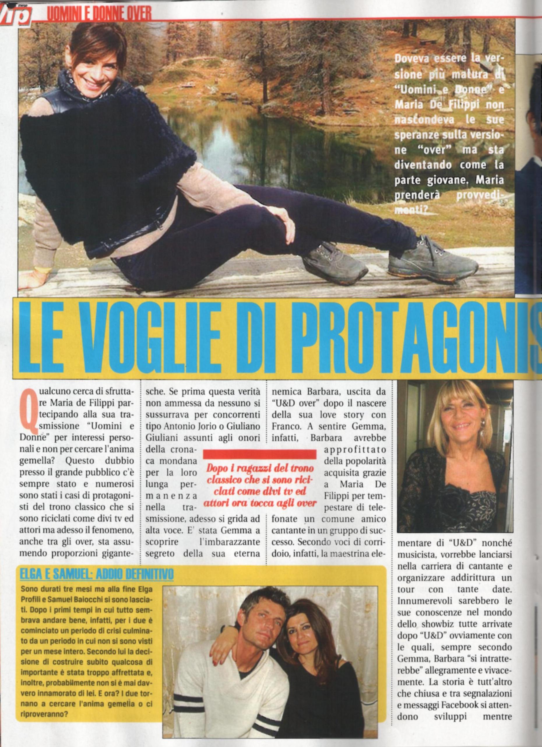 Qualcuno è andato a Uomini e donne solo per interessi personali e non per cercare l’anima gemella? Negli ultimi tempi questa domanda torna sempre più insistente ed ha colpito persino la categoria degli “Over”. Questa verità si sussurrava già da tempo per i due grandi veterani del programma, Antonio Jorio e Giuliano Giuliani, che seppur presenti da anni, non riescono a trovare la donna giusta. Ma adesso l’altra veterana, Gemma Galgani, ha rivelato degli altarini, sostenendo che la sua nemica Barbara De Santi avesse approfittato della popolarità per tempestare di telefonate un amico comune, che è un cantante di successo. Lo scopo della maestrina sarebbe infatti quello di lanciarsi nella carriera di cantante. Secondo Gemma, inoltre, Barbara si “intratterrebbe vivacemente” con le conoscenze acquisite grazie a Uomini e donne. La storia è tutt’altro che chiusa e continua tra messaggi e segnalazioni Facebook. La De Santi sostiene che la stessa Gemma avrebbe intrattenuto, da giovane, una relazione con Walter Chiari. E cosa dire di Guido Soldati? Anche l’ex di Barbara, infatti, oltre a trovare l’amore con Francesca, ha arricchito le sue conoscenze note e ha dato una grande festa per il suo compleanno, alla quale era invitata anche Irene Casartelli, ex corteggiatrice di Aldo Palmeri e Tommaso Scala. Guido, però, come più volte detto, è amico anche dell’ex tronista Alessio Lo Passo e dell’attore Roberto Farnesi e anche durante la sua conoscenza con Barbara si vociferava di sue partecipazioni a serate vip. Infine, dopo tre mesi fuori dal programma, Elga Profili e Samuel Baiocchi si sono lasciati, ma ora sono di nuovo pronti per trovare il fidanzato in tv: che sia solo per visibilità?
