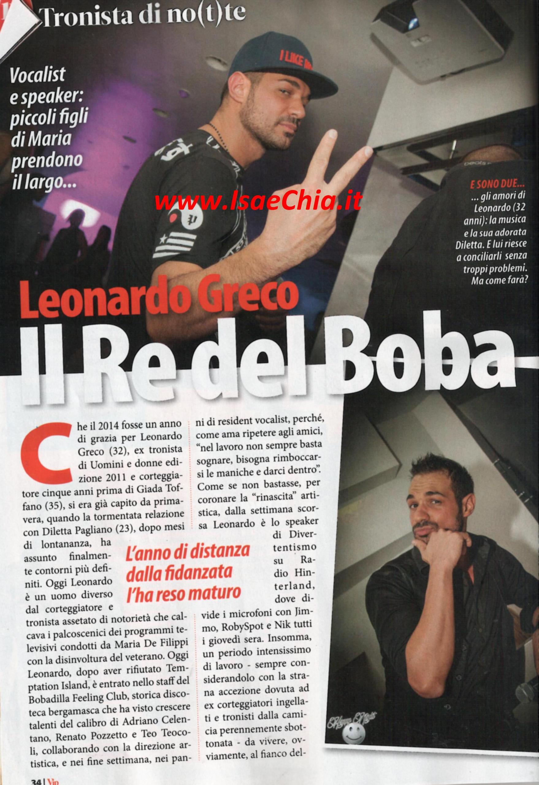 Il 2014 è decisamente un anno di grazia per l’ex tronista Leonardo Greco e lo si era capito già dalla primavera, quando ha ritrovato l’amore di Diletta Pagliano, la corteggiatrice che aveva scelto a Uomini e donne, ma con la quale aveva vissuto una storia tormentata che li aveva portati all’ennesima rottura. Oggi, però, Leo è un uomo diverso dall’animatore, un po’ farfallone, che cercava un po’ di notorietà in tv. Non solo ha rifiutato di mettere ancora alla prova la relazione con Diletta a Temptation Island, ma ha scelto la stabilità professionale, entrando nello staff del Bobadilla Feeling Club, storica discoteca bergamasca dove sono cresciuti talenti come Adriano Celentano, Teo Teocoli e Renato Pozzetto. Leonardo collabora con la direzione artistica e nei fine settimana è anche resident vocalist, perché sul lavoro, come dice lui, “non basta sognare, bisogna rimboccarsi le maniche e darci dentro”. Inoltre, dalla scorsa settimana, è uno degli speaker di Divertentismo, su Radio Hinterland, tutti i giovedì sera. Insomma, un periodo intensissimo di lavoro, da vivere, chiaramente, con la sua amata: “Un anno di distanza tra me e Diletta è stato più che sufficiente per metterci alla prova, per capire veramente chi siamo. Non è semplice conoscersi in un programma televisivo quando si è giovanissimi. La lontananza ci ha fatto ritrovare il nostro amore che sembrava perduto”.