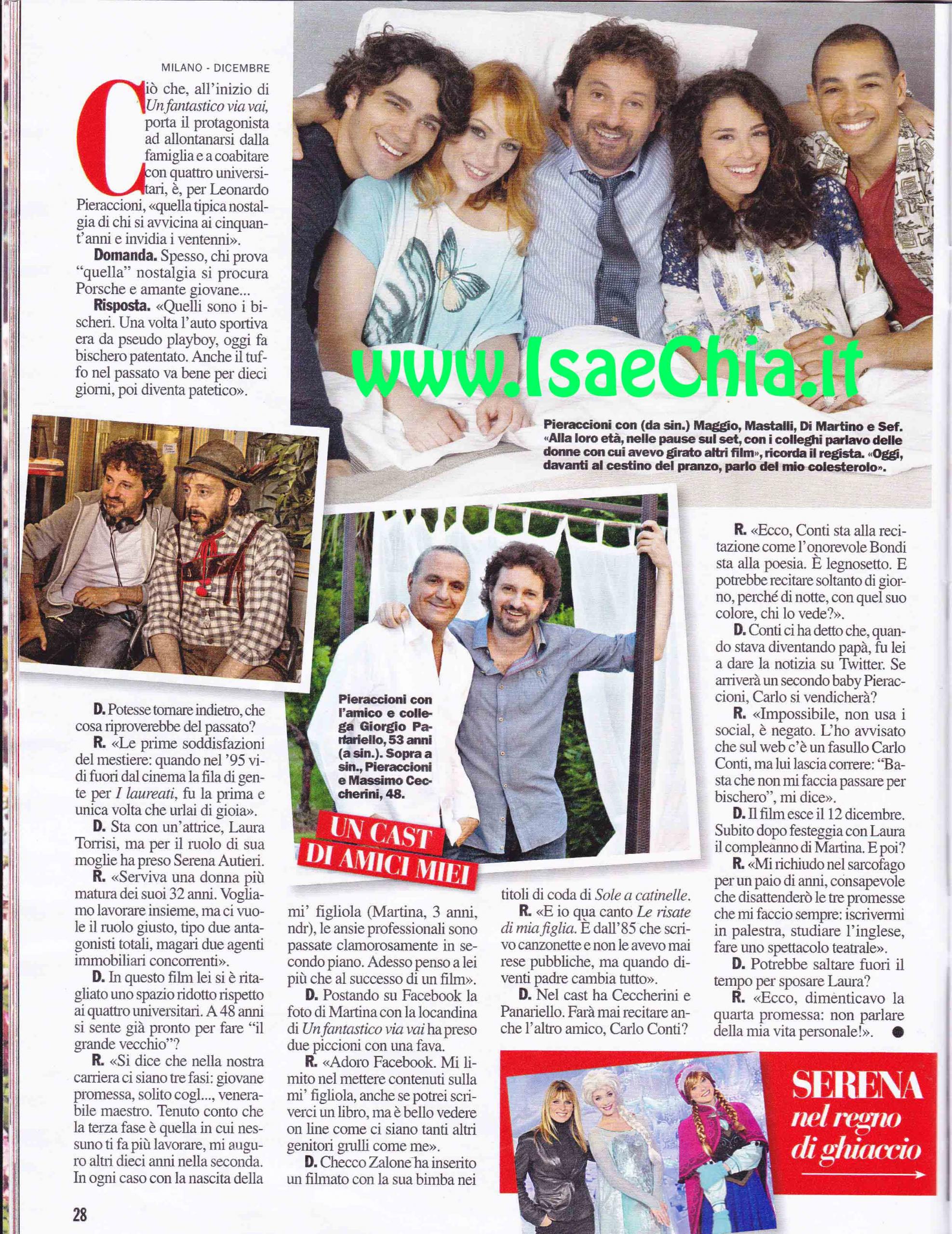 urlai di gioia. Con la nascita della mi’ figliola (Martina, 3 anni avuta dall’ex gieffina Laura Torrisi ndr), le ansie professionali sono passate in secondo piano. Adesso penso a lei più che al successo di un film”. Postando una foto di sua figlia accanto alla locandina del film ha preso due piccioni con una fava: “Adoro Facebook. Mi limito a mettere contenuti sulla mi’ figliola, anche se potrei scriverci un libro”. Nel cast del suo film è affiancato da Giorgio Panariello e da Massimo Ceccherini e per quanto riguarda il suo amico Carlo Conti, commenta: “Ecco, Conti sta alla recitazione come l’onorevole Bondi sta alla poesia. E’ legnosetto. E potrebbe recitare soltanto di giorno, perché di notte con quel suo colore, chi lo vede?”. Dopo l’uscita del film del 12 dicembre festeggerà insieme a Laura il compleanno della piccola Martina e poi: “Mi rinchiudo nel sarcofago per un paio d’anni, consapevole che disattenderò le tre promesse che mi faccio sempre. Iscrivermi in palestra, studiare l’inglese, fare uno spettacolo teatrale”.