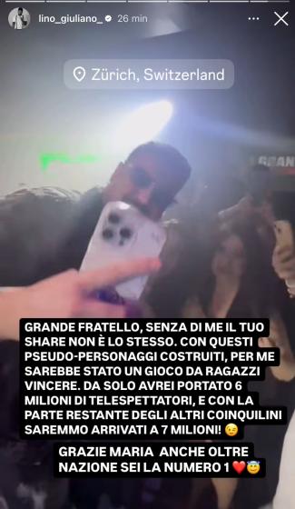 Dopo i bagordi, Lino ha pensato bene di postare una storia Instagram rivolgendo (l’ennesimo) messaggio alla produzione del reality show, sparandola decisamente grossa: