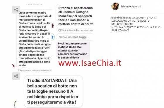 Intanto, LeBimbeDiGiuliaD, fanpage dedicata alla fidanzata di Andrea Damante chiariscono e si dissociano dalle minacce ricevute dalla campana: