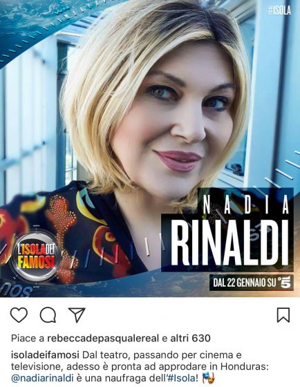 Nadia Rinaldi è la prima naufraga ufficiale della nuova edizione de l’Isola 13, seguita subito dopo dalla cantante sarda, Bianca Atzei: