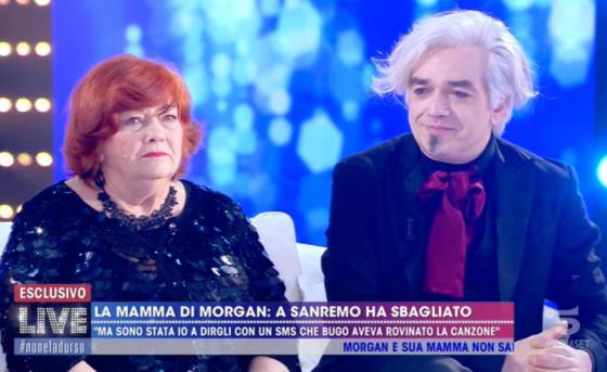 In studio ha poi fatto il suo ingresso la signora Luciana, madre del cantante, per rincontrarlo dopo più di un anno. Oggi la signora Castoldi aveva rivelato alla D’Urso che a segnare il figlio, durante la sua adolescenza, era stato il suicidio del padre e che proprio lei aveva mandato un messaggio dopo l’esibizione del figlio con Bugo di Canzone Per Te, criticandone l’esecuzione. Ecco che Morgan ha voluto supportare allora la madre, non risparmiando una frecciatina a Gianni Morandi: