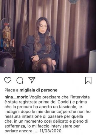 Nel frattempo, la Moric (che solo qualche giorno fa aveva annunciato di volersi allontanare da Instagram) ha pubblicato – e poi successivamente tolto – una foto sotto la quale precisava che l’intervista era stata registrata prima del Covid e prima dell’inizio dell’indagine da parte della procura: