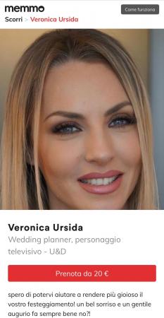 Non passa inosservata agli spettatori di Uomini e Donne la presenza tra i nomi del sito di Veronica Ursida, ex dama del Trono over, che per mandare un video saluto ai sui fan chiede 20 euro.