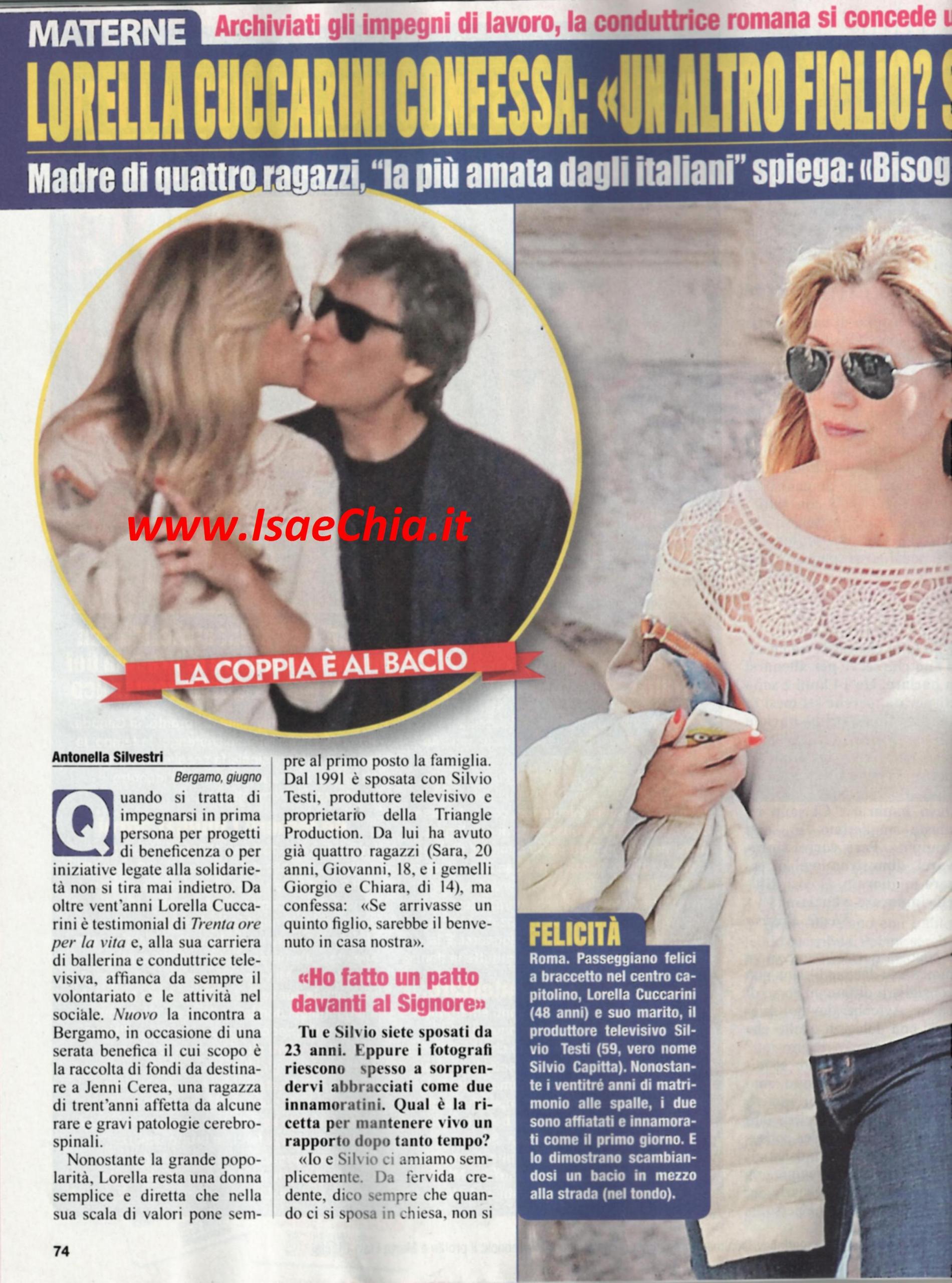 La conduttrice Lorella Cuccarini, 48 anni, è da anni sulla cresta dell’onda e si occupa anche di beneficenza grazie al progetto Trenta ore per la vita. Ultimamente è stata fotografata, sempre più complice e innamorata come una ragazzina, con suo marito, il produttore tv Silvio Testi, con cui ha quattro figli: Sara, 20, Giovanni, 18, e i gemelli Giorgio e Chiara, 14. Quando le si chiede il loro segreto, la ‘più amata dagli Italiani’ risponde: “Io e Silvio ci amiamo semplicemente. Da fervida credente, io dico che quando ci si sposa in chiesa, non si sceglie solo il compagno per la vita, ma Dio stesso: fare un patto davanti al Signore significa dare amore e aiuto anche nei momenti difficili che ognuno vive. Bisogna preservare la famiglia, perché è la pianta più bella che abbiamo nel nostro giardino. La famiglia è in crisi perché siamo tutti concentrati su noi stessi”. Infatti, la bella showgirl ha confessato: “Se arrivasse un quinto figlio, sarebbe il benvenuto in casa nostra!”. Quando le si chiede come ha vissuto la distanza dalla primogenita Sara, che ha studiato per un periodo all’estero, risponde: “Fortunatamente, ha deciso di tornare in Italia! In ogni caso appoggio sempre le scelte dei miei figli: sono una mamma comprensiva, anche se a volte ansiosa!” mentre sul suo ruolo nel sociale racconta: “Faccio beneficenza da prima di diventare mamma: mi sono accorta che ero fortunata. Ultimamente ho aiutato Jenni Cerea, una ragazza conosciuta su Twitter che dal 2005 è costretta a letto con dolori insopportabili. Nonostante questo, ha girato l’Italia per cercare una soluzione e nessuno è stata in grado di aiutarla e ora la sua speranza sono gli Stati Uniti, dove dovrà sottoporsi a due interventi chirurgici molto costosi”. Infine, parlando dei suoi progetti futuri, dice: “Per ora non abbiamo ancora deciso dove andremo in vacanza: ho terminato la mia esperienza in radio con Citofonare Cuccarini che mi ha permesso di scoprire questo nuovo mondo e attendo la nuova stagione tv”.