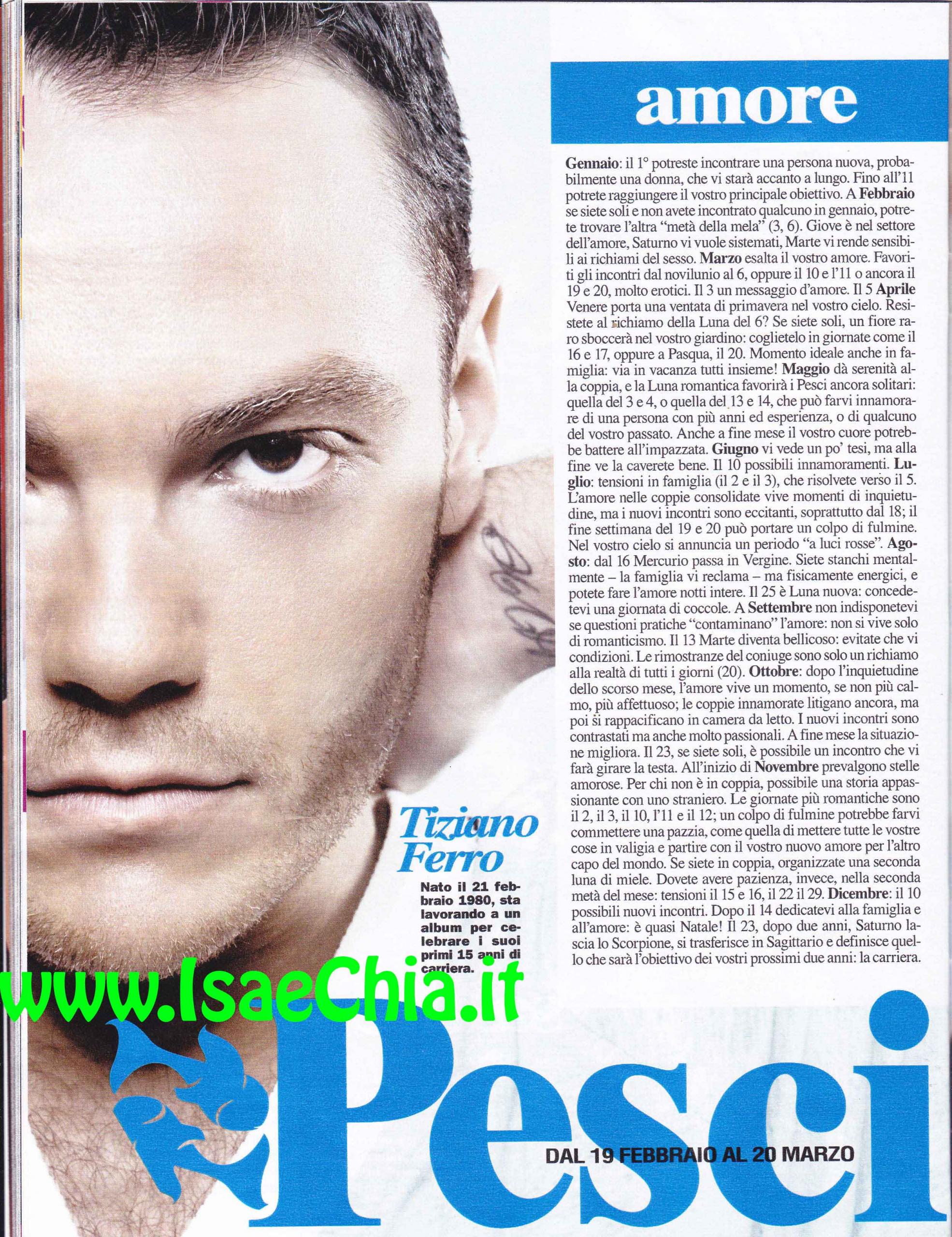 Infine, per il segno dei Pesci, (come Tiziano Ferro e Ornella Muti), a gennaio si potrebbe incontrare una persona nuova che ci starà accanto a lungo.