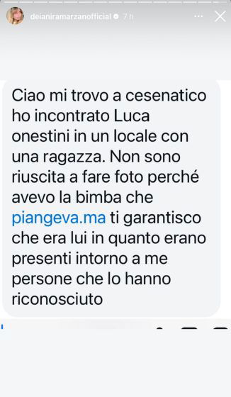 Inoltre, in un’altra segnalazione, viene raccontato che Luca era in compagnia di una ragazza in un locale di Cesenatico: