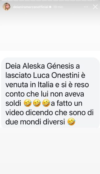 Aleska Genesis ha lasciato Luca Onestini, è venuta in Italia e si è resa conto che lui non aveva soldi. Ha fatto un video dicendo che sono di due mondi diversi.