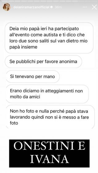 Deia, mio papà ieri ha partecipato all’evento come autista e ti dico che loro due sono saliti sul van dietro mio papà insieme. Si tenevano per mano. Erano diciamo in atteggiamenti non molto da amici.