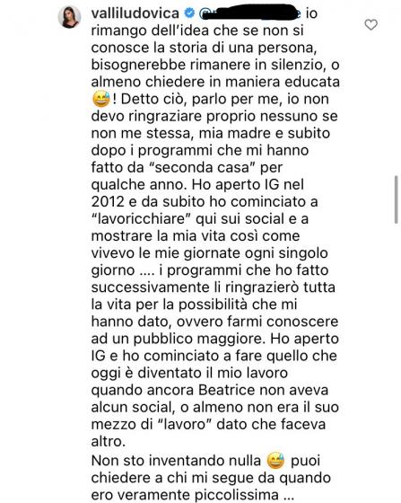 Dopo la puntata Ludovica è intervenuta su Instagram e ha risposto ad alcune domande dei fan. Durante la puntata di Verissimo in molti hanno notato un continuo punzecchiarsi con Beatrice. A questo proposito Ludovica ha detto: