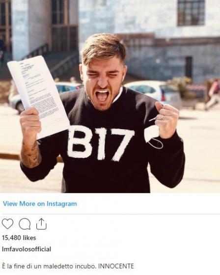 Oggi, a distanza di diverso tempo, Favoloso ha voluto comunicare ai suoi follower l’esito a lui favorevole. Con una foto pubblicata su Instagram che lo ritrae fuori dal Tribunale ha fatto sapere: