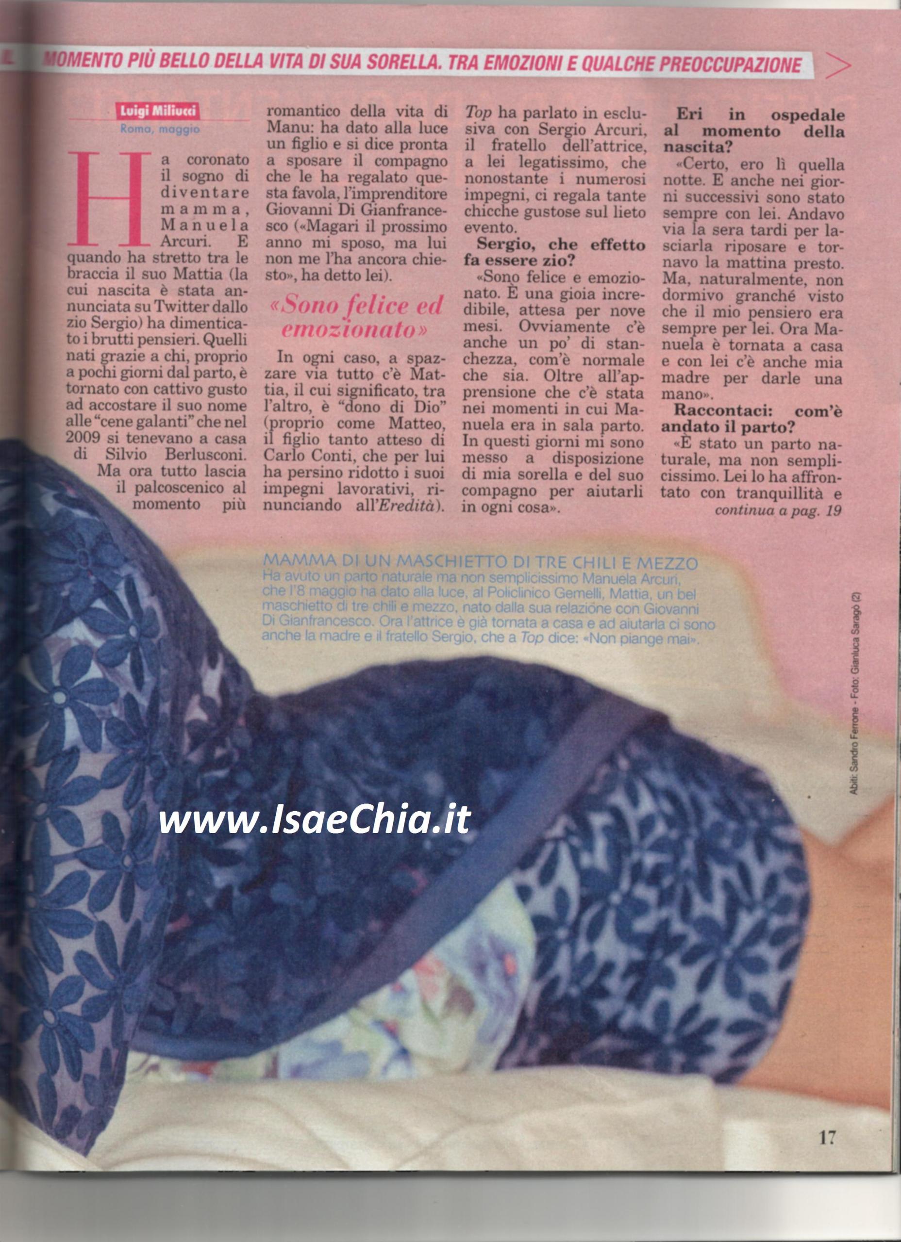 Il primo ad annunciare che Manuela Arcuri era diventata mamma di Mattia è stato suo fratello, Sergio. L’attore adesso rilascia le sue prime dichiarazioni da zio: “Sono felice ed emozionato. E’ una gioia incredibile, attesa per 9 mesi. Ovviamente c’è anche un po’ di stanchezza, come è normale che sia, oltre ai momenti di tensione quando era in sala parto. In questi giorni mi sono messo a disposizione sua e del suo compagno Giovanni Di Gianfrancesco. Sono stato lì quella notte e anche nei giorni successivi. Andavo via la sera tardi e tornavo la mattina, ma non dormivo perché il mio pensiero era sempre per lei. Il parto è stato naturale, ma non semplicissimo. Lei lo ha affrontato con tranquillità come ha fatto tutta la gravidanza. Giovanni ha assistito, come aveva promesso, e il suo supporto psicologico è stato importante per lei. Alcuni dicono che Mattia sia uguale a Manu, altri dicono somigli a Giovanni. E’ un bambino buono e sereno e non piange mai. Pesa 3 chili e mezzo e poi, cosa importantissima, è in ottima forma. Gli ho già regalato tanti vestiti e giochi, mentre la casa di Manuela è una fioriera! Io le regalerò un gioiello, qualcosa che le ricordi per sempre questo momento”. Infine, quando gli si chiede se è vero che uno tra Gabriel Garko e i fratelli Arcuri sarà il padrino di battesimo del piccolo, risponde: “Non credo sarà uno di famiglia. Credo sia bello che sia un amico, ma non penso sarà Gabriel. Immagino che saranno amici stretti della coppia, che potranno seguire da vicino la crescita del bambino”.
