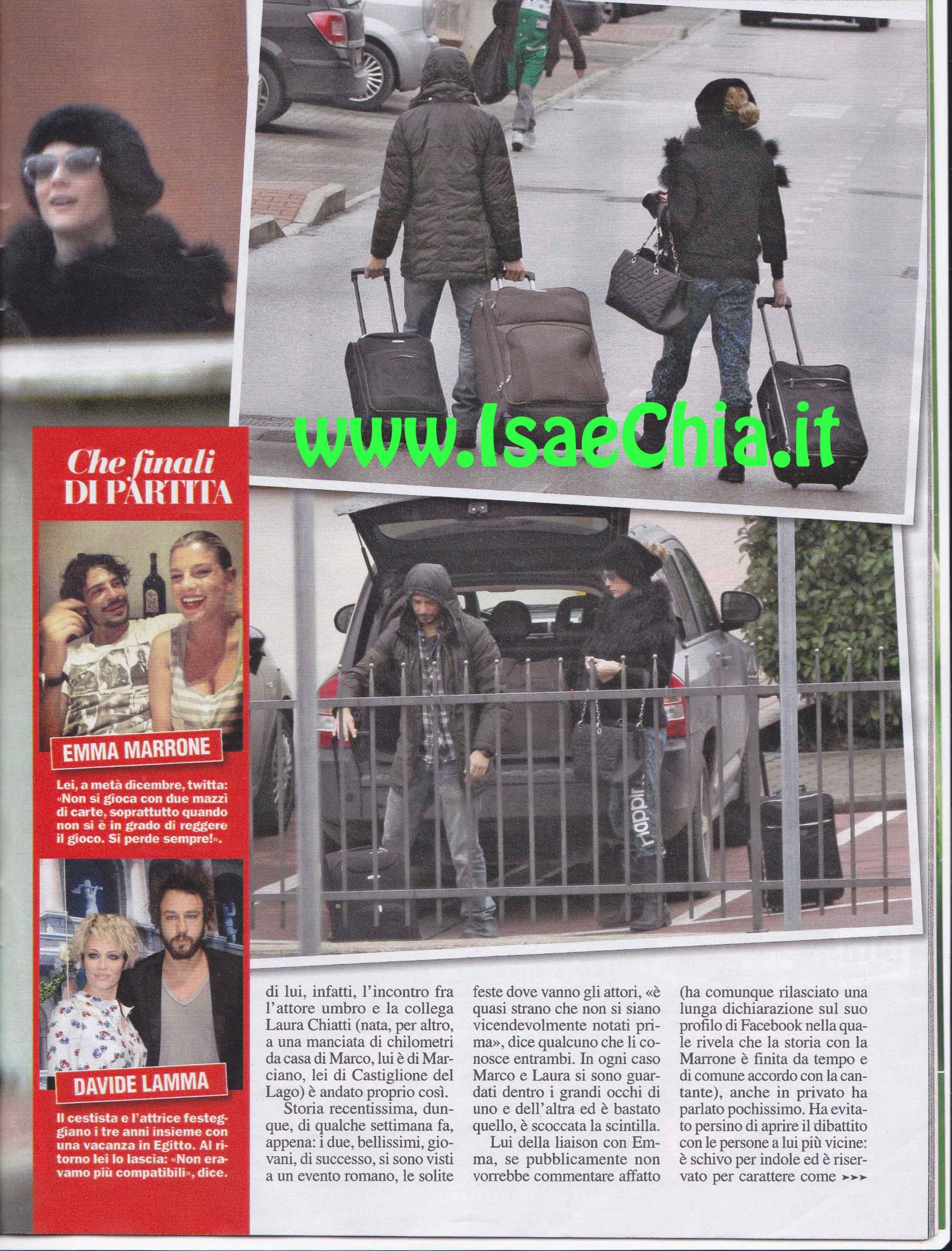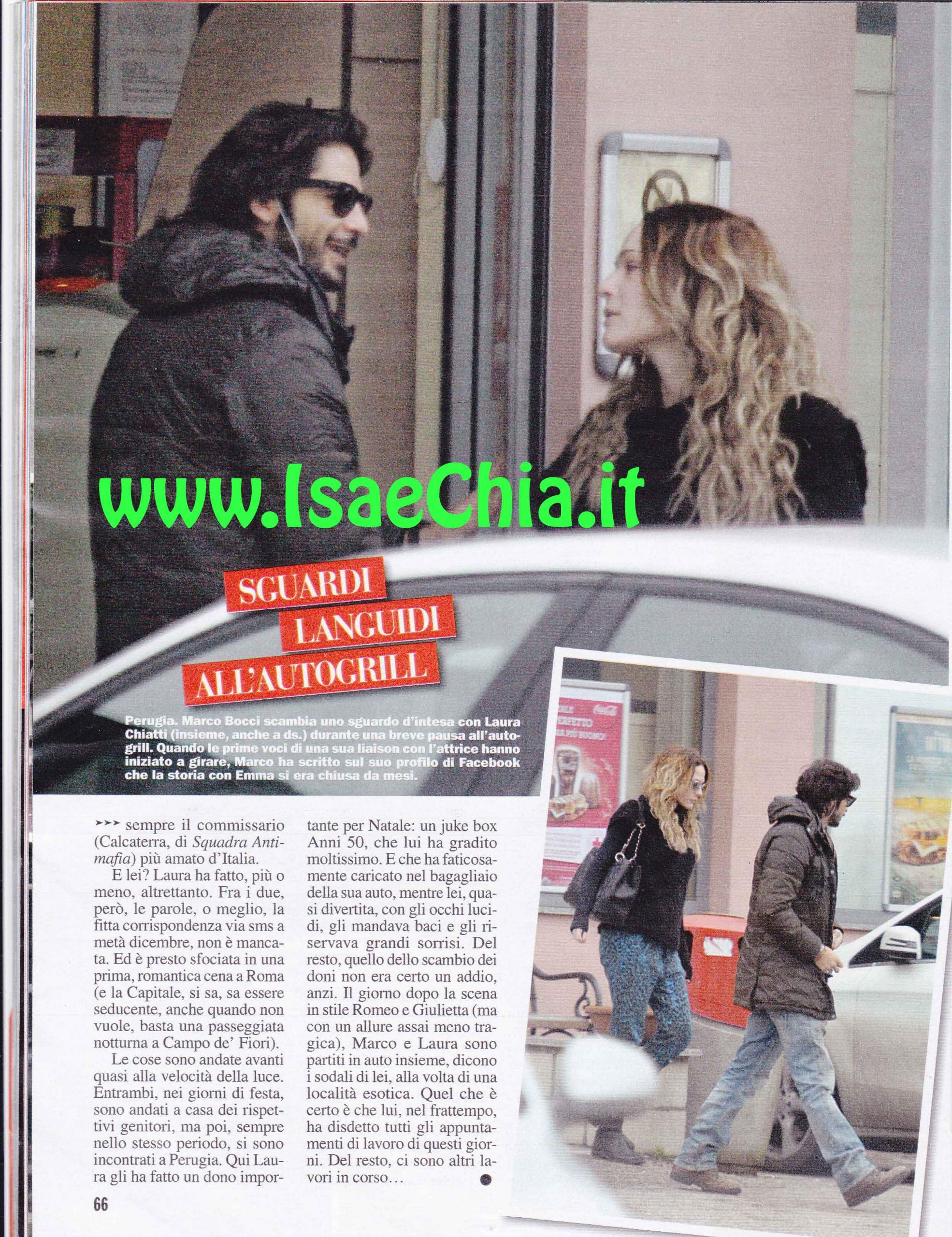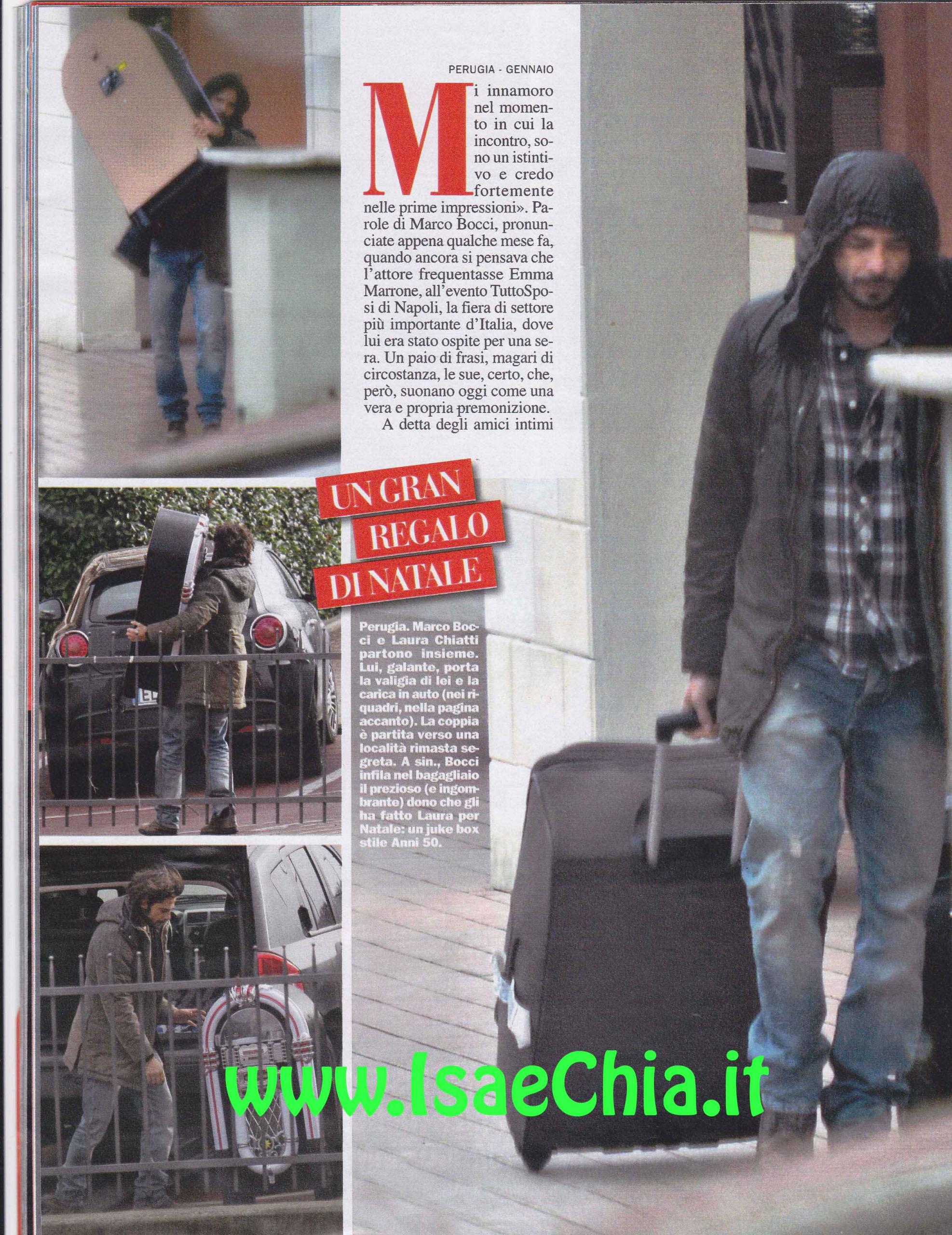 “Mi innamoro nel momento in cui la incontro, sono una persona istintiva e credo fortemente nelle prime impressioni”, sono le parole di Marco Bocci, dette qualche mese fa, che ora risuonano come una premonizione. A detta degli amici intimi, l’incontro tra l’attore umbro e l’attrice Laura Chiatti è andato proprio così. I due si sono visti ad un evento romano ed “è quasi strano che non si siano vicendevolmente incontrati prima”, nota qualcuno. In ogni caso, si sono guardati ed è scoccata la scintilla. Lui della liaison con la cantante Emma Marrone anche in privato ha parlato pochissimo. E’ schivo per indole e riservato per carattere e Laura ha fatto più o meno altrettanto. Fra i due, la fitta corrispondenza di sms è presto sfociata in una romantica cena a Roma e le cose sono andate avanti quasi alla velocità della luce. Entrambi nei giorni di festa sono andati a casa dei rispettivi genitori, ma poi si sono incontrati a Perugia. Qui Laura gli ha regalato un juke box anni ’50 che lui ha gradito moltissimo e che ha faticosamente caricato nel bagagliaio della sua auto e mentre lei lo guardava dalla finestra, Marco le rivolgeva sorrisi e baci a distanza, proprio come Romeo e Giulietta. Il giorno dopo i due sono partiti in auto insieme, alla volta di una località esotica. Quello che è certo, è che lui ha disdetto diversi appuntamenti di lavoro in questi giorni…