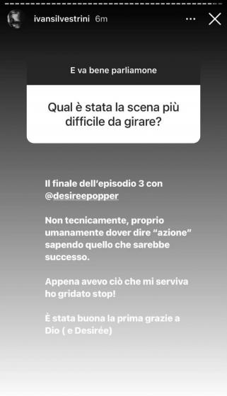 Ma non è tutto; perchè proprio Silvestrini ha rivelato – rispondendo alle consuete domande su Instagram – quale è stata la scena più difficile da girare e perchè.