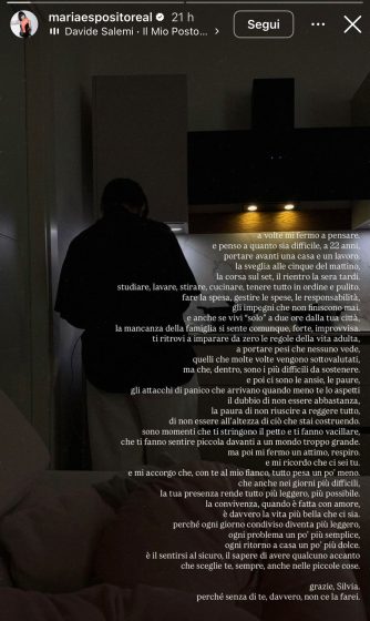 Parole molto importanti e profonde, quelle che Maria ha dedicato a Silvia, la quale nelle storie Instagram dell’attrice si è mostrata visibilmente commossa per questa inaspettata dichiarazione.