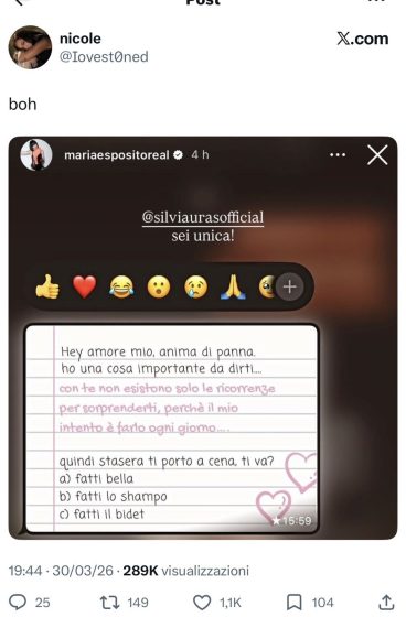 Maria ha postato suoi suoi profili social un messaggio di Silvia in cui veniva invitata a cena.
