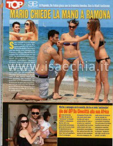 Una semplice goliardata o un gesto voluto e cosciente? Non si sa: ciò che è certo è che Mario De Felice non ha perso occasione (al Papeete Beach, luogo riservatissimo) per chiedere la mano della sua Ramona Amodeo sulla spiaggia, con tanto di genuflessione e spettatori con funzione da testimone (alias Francesca Nicolì di Amici, con un taglio di capelli che definire improponibile è poco).